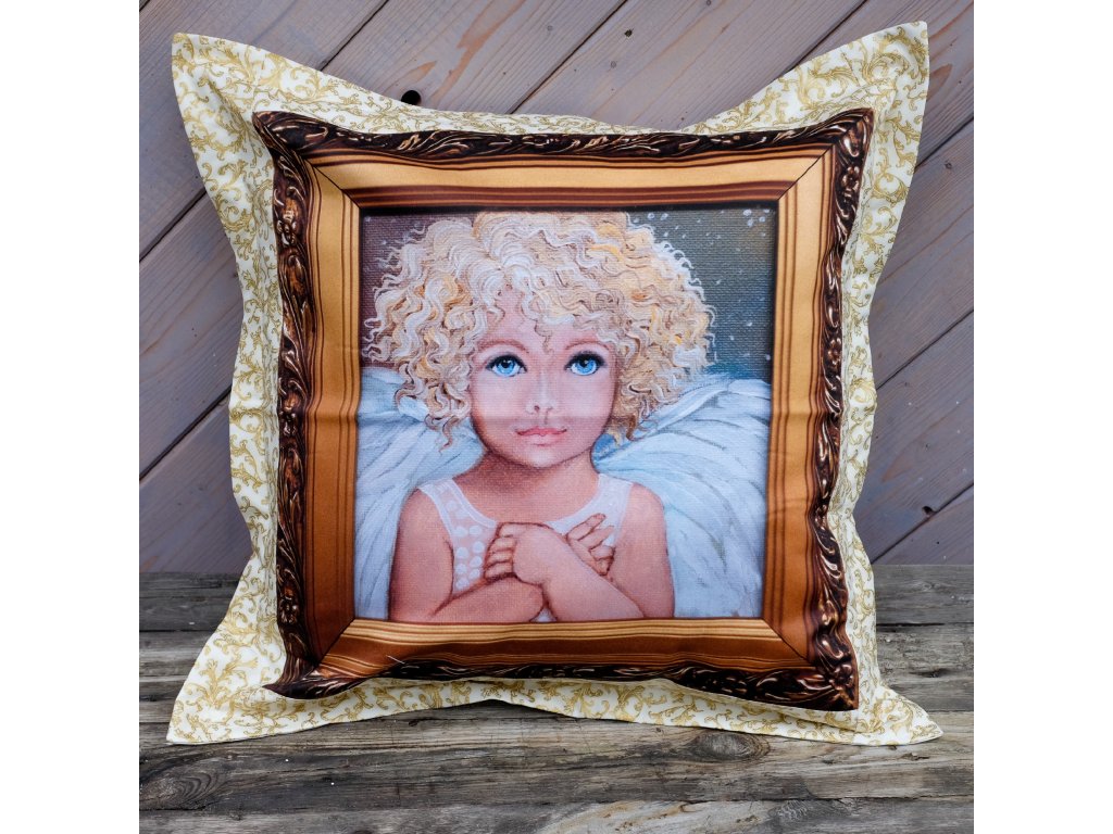 Polštář je ušitá z mé látky kterou jsem si nechala vytisknout. Velikost obrázku je 40 x40 cm okolo je ozdobný okraj z amerických designových látek. Přední strana je podložená termolínem. Potah na zip.