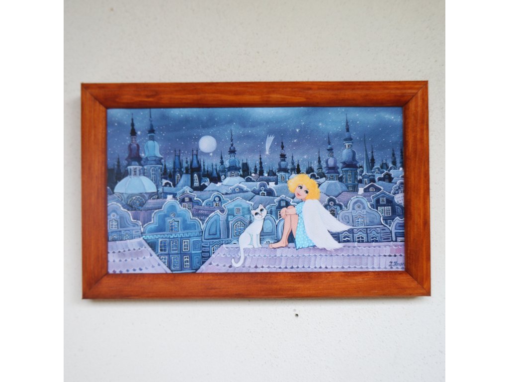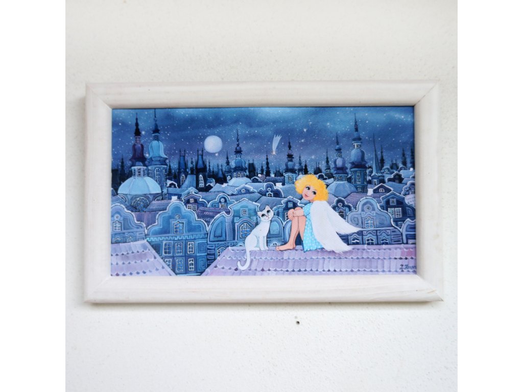 Obrázek je velký 21 x 13 cm, rámovaný v jednoduchém dřevěném rámečku muže být bílý nebo hnědý - napište k objednávce