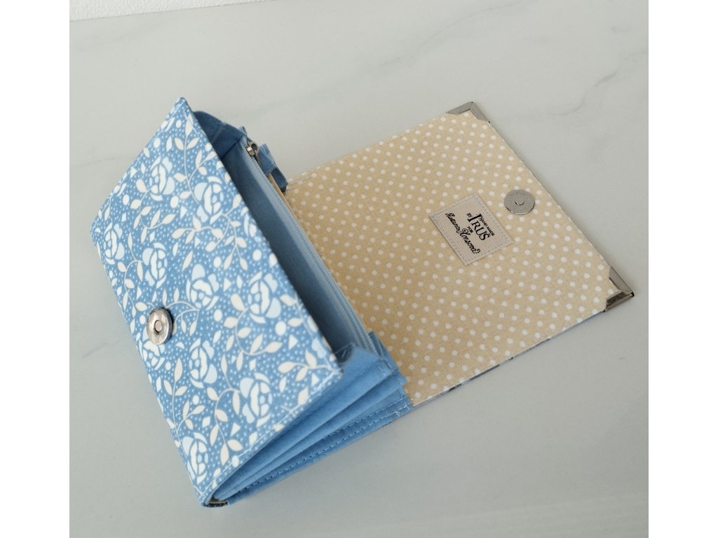 Peněženka má zapínaní na magnetku. Má čtyři kapsičky na bankovky a doklady. Jednu zipovou kapsičku na kovové mince a dvě samostatné větší kapsy na karty kde se do jedné vejde karet i více.