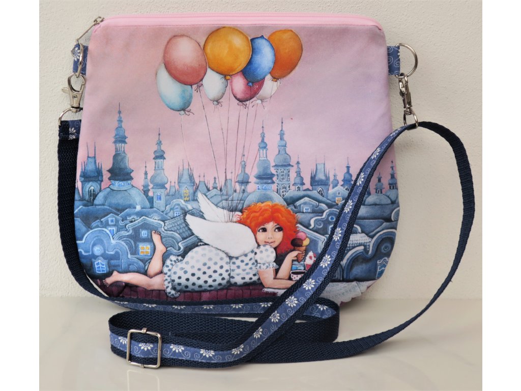 rozměry: 24 x 22 cm. Zadní strana je z americké designové látky. Uvnitř je kapsa na klíče a mobil.