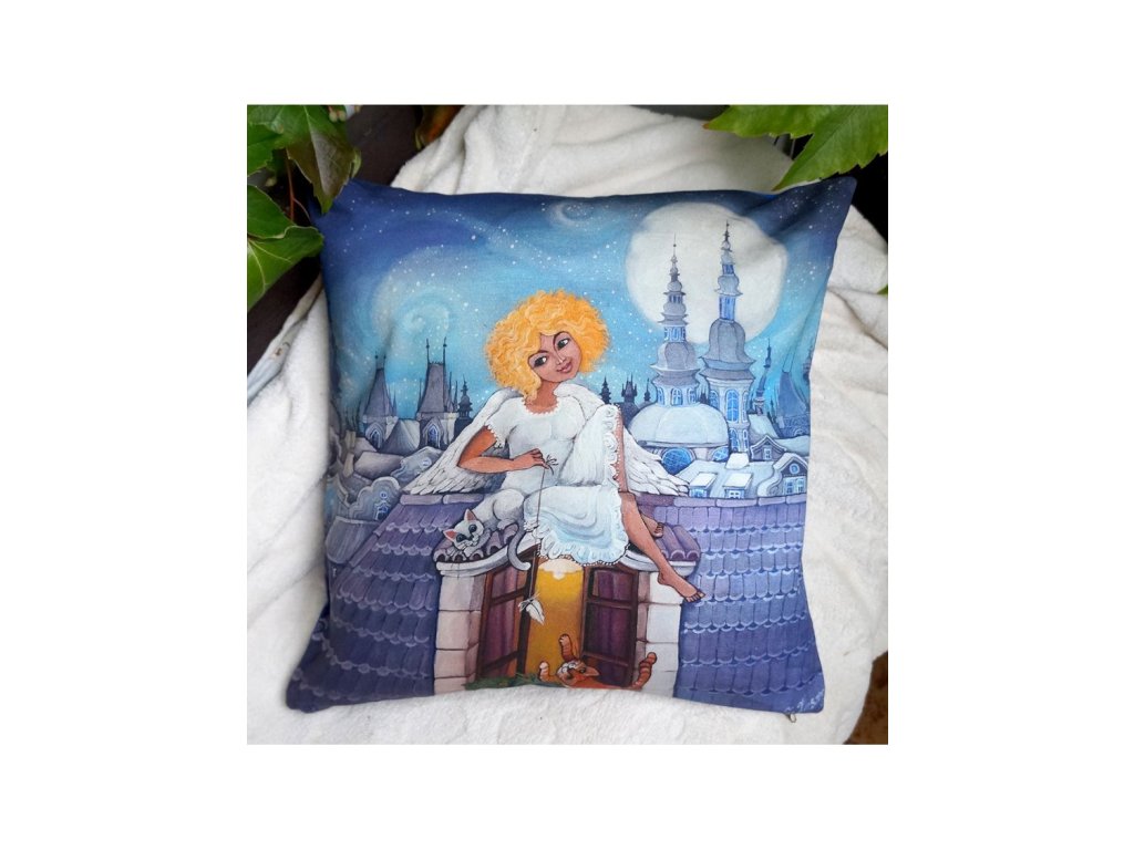 ze zadní strany bavlna barevně ladící s obrázkem. Kvalitní náplň -duté vlákno. Prát na 40 stupňů.