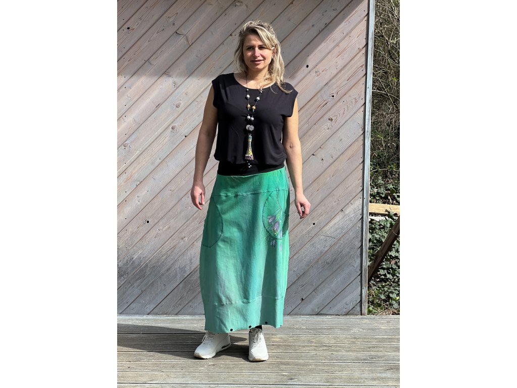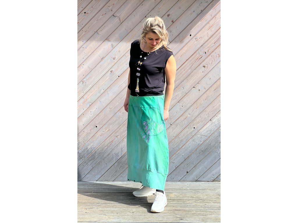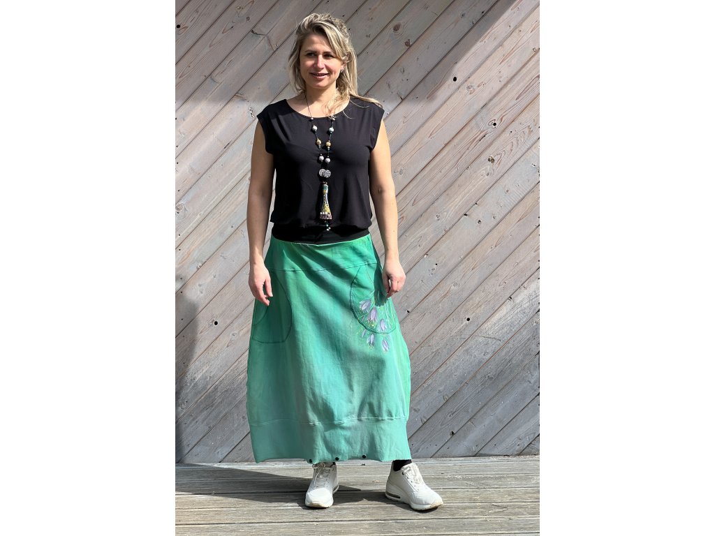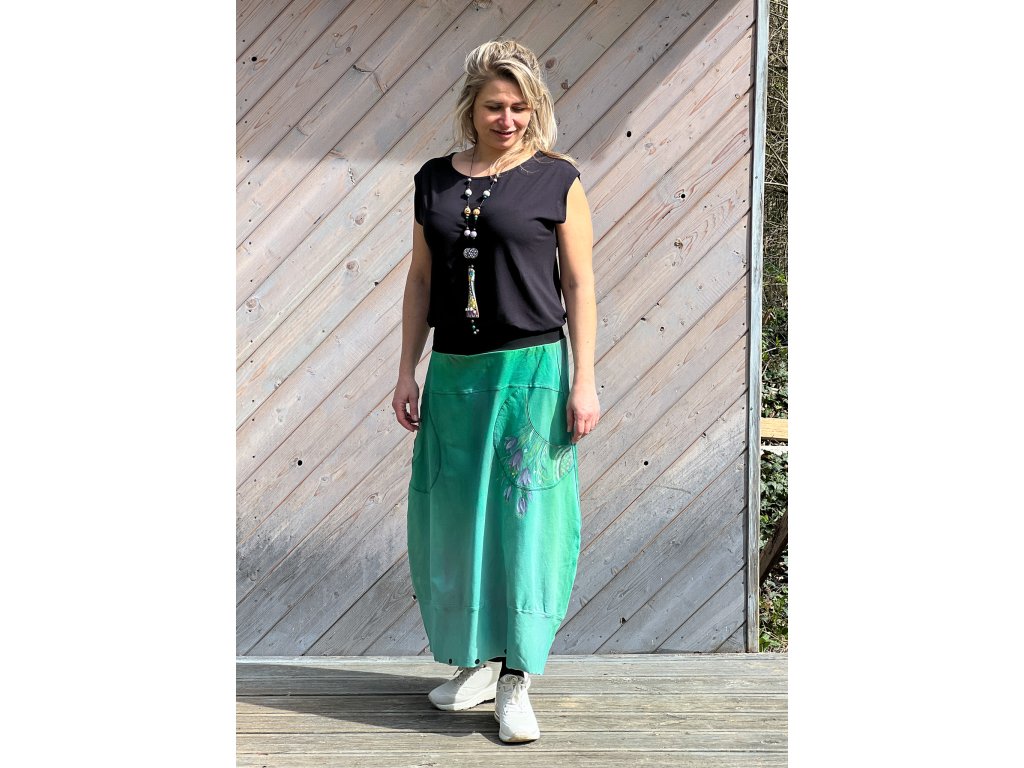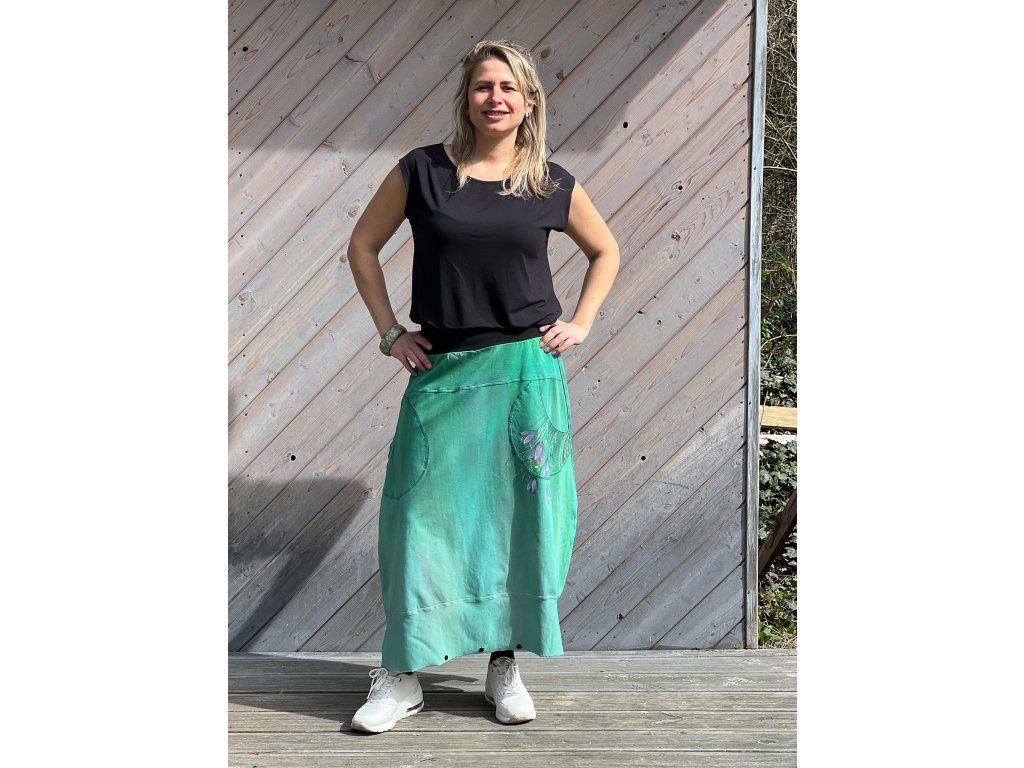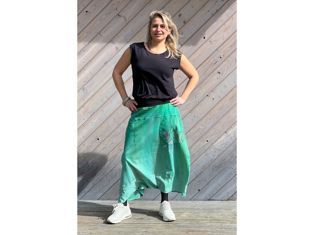 Zajímavá , originální, pohodlná sukně barvená a malovávaná.