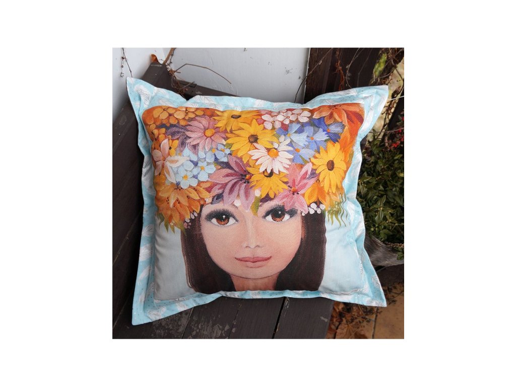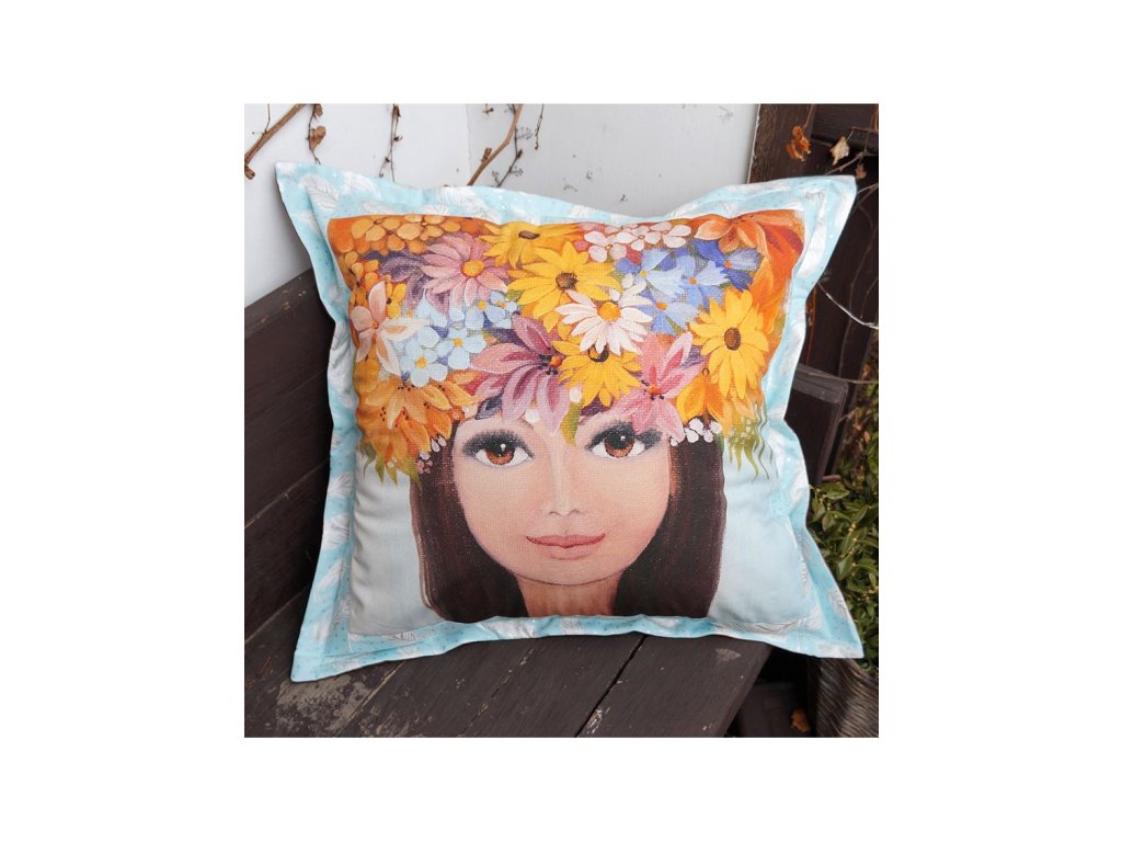 Na tuhle chvíli jsem se moc těšila - látka vytištěná v Německu -100% kvalitní bavlna.velikost polštáře 50 x 50 cm, plus ozdobný okraj. Zahraniční látky doplňující obrázek krásně ladí.