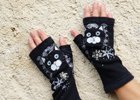 malované rukavice bezprstové - velikost tak akorát, ale i když mám ruku docela velkou vejdu se, je i možné vzít pod ně lehčí prstové rukavice. Barvy jsou krásné...