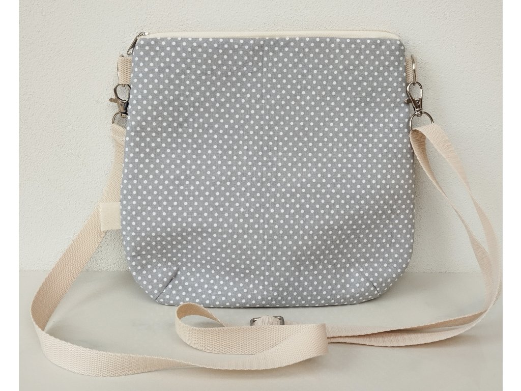 rozměry: 24 x 22 cm. Zadní strana je z americké designové látky. Uvnitř je kapsa na klíče a mobil.