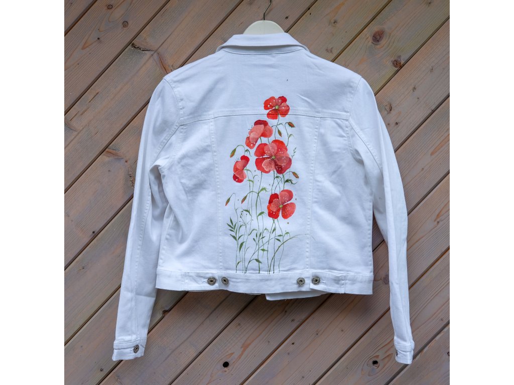 Bunda je nová s cedulkou, nenošená, namalovala jsem ji kvalitními barvami na textil a vypadá krásně.