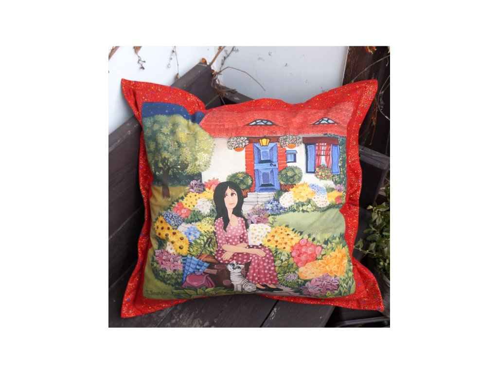 Na tuhle chvíli jsem se moc těšila - látka vytištěná v Německu -100% kvalitní bavlna.velikost polštáře 50 x 50 cm, plus ozdobný okraj. Zahraniční látky doplňující obrázek krásně ladí.