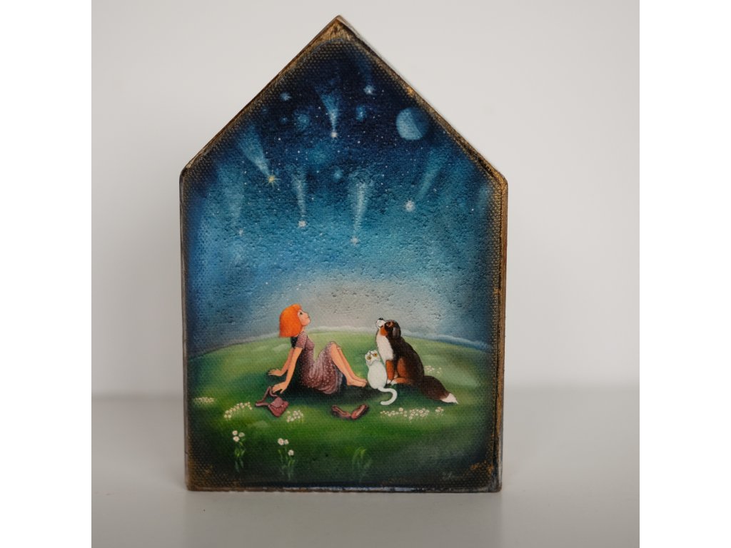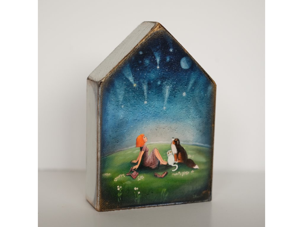 Dřevěný patinovaný domeček - obrázek je vytištěný na plátno - velmi kvalitní tisk co vydrží zapatinovaný domalovaný a přelakovaný.