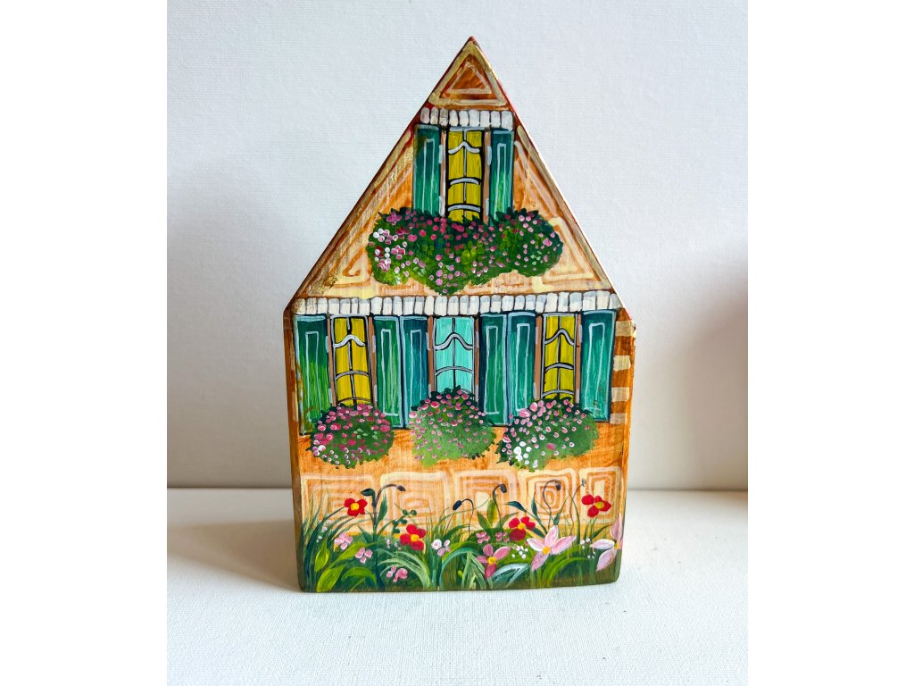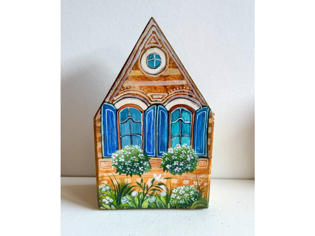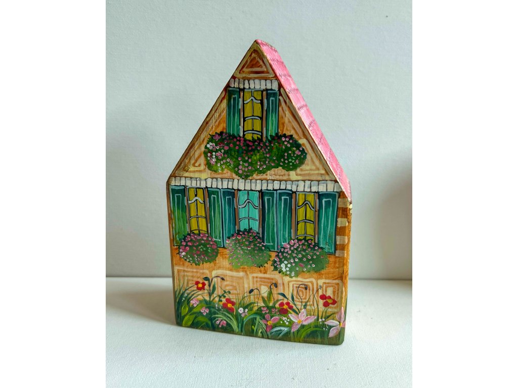 Dřevěný domeček malovaný olejovými barvami ze všech stran