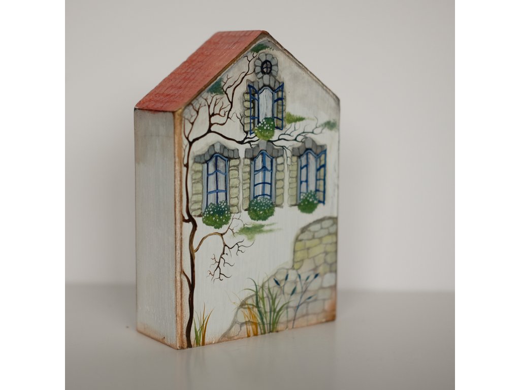 Dřevěný domeček ,patinovaný a malovaný olejovými barvami z obou stran