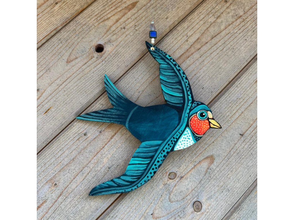 Dřevěná oboustranně malovaná vlaštovka