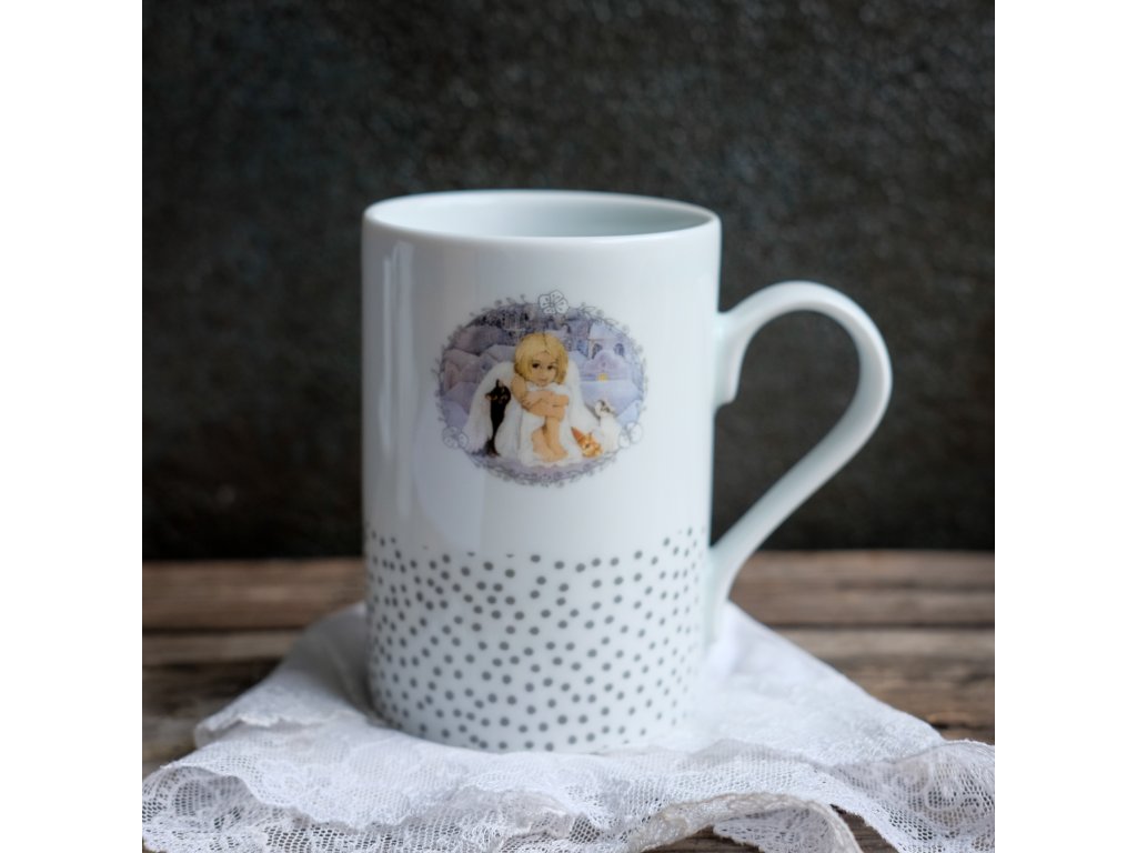 Hrníček tak akorát - 300 ml, výška 10 cm, průměr 7 cm - autorský porcelán ( na spodní straně má značka)