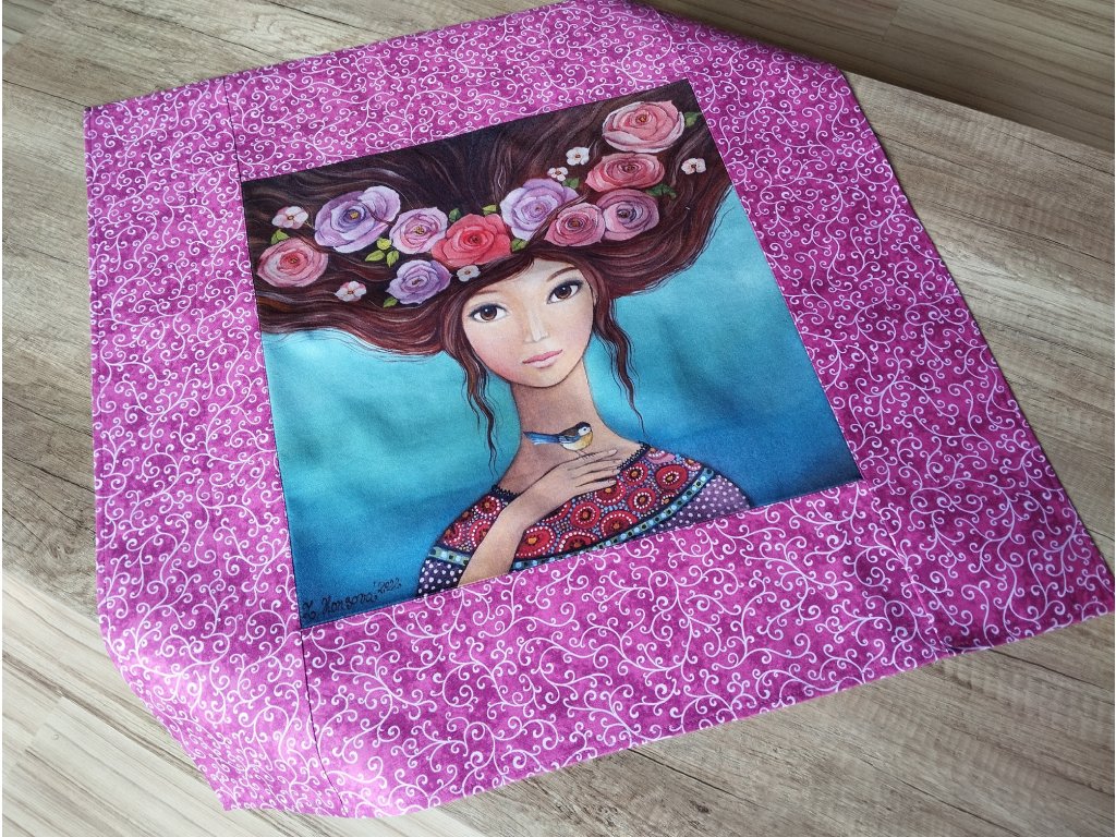 velikost 64 x 64 cm, Můj obrázek vytištěný bavlněném saténu. doplněný krásnými zahraničními látkami.