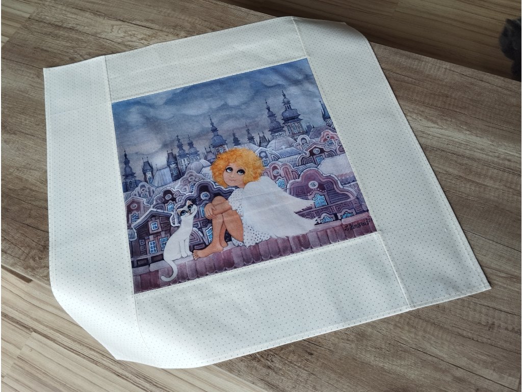 Jarní středový ubrus Andělka a kočička 64 x 64 cm