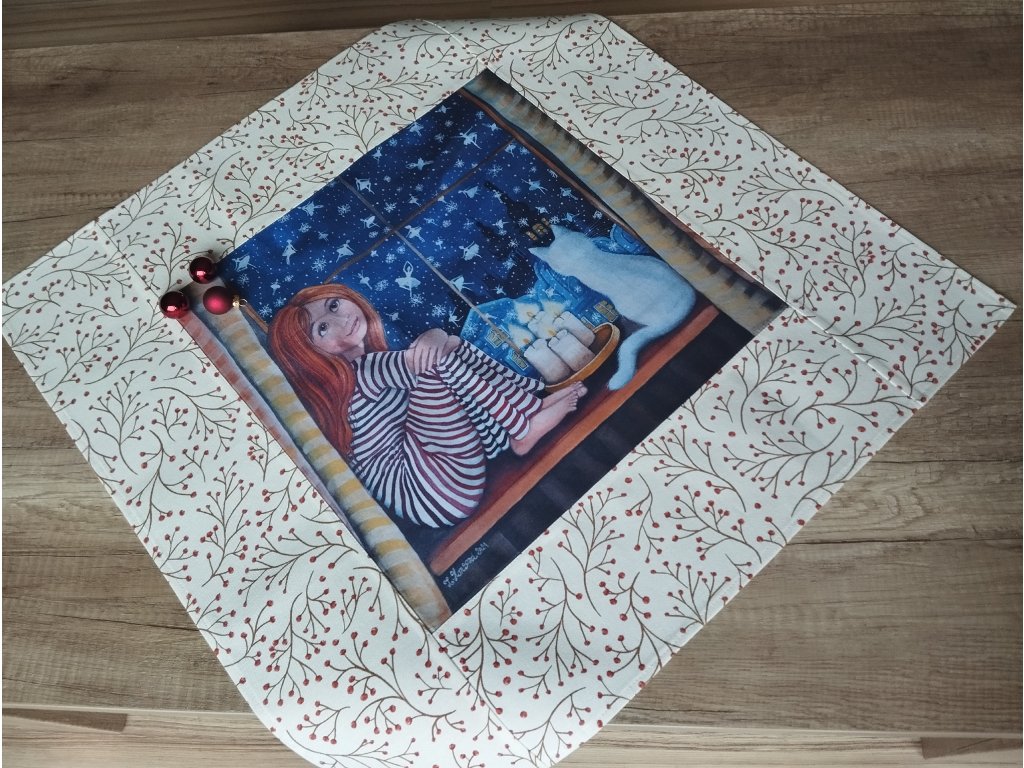 velikost 64 x 64 cm, Můj obrázek vytištěný bavlněném saténu. doplněný krásnými zahraničními látkami.