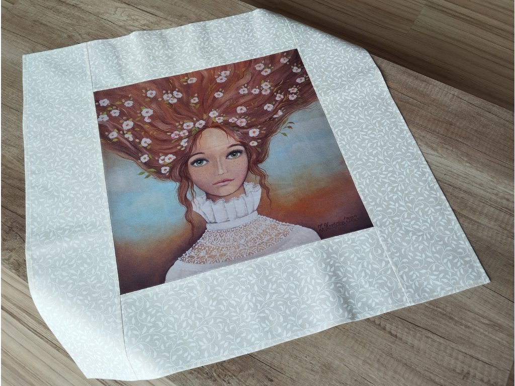 velikost 64 x 64 cm, Můj obrázek vytištěný bavlněném saténu. doplněný krásnými zahraničními látkami.