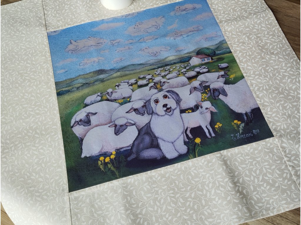Jarní středový ubrus Pejsek co neuhlídal beránky 64 x 64 cm