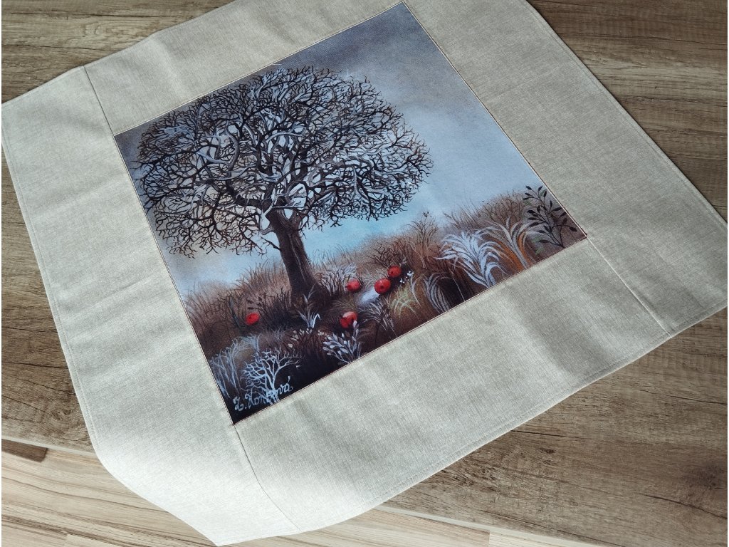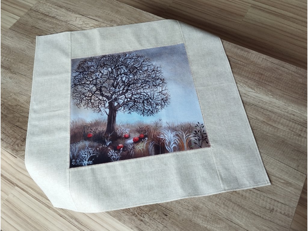 Jarní středový ubrus Strom s jablíčky 64 x 64 cm