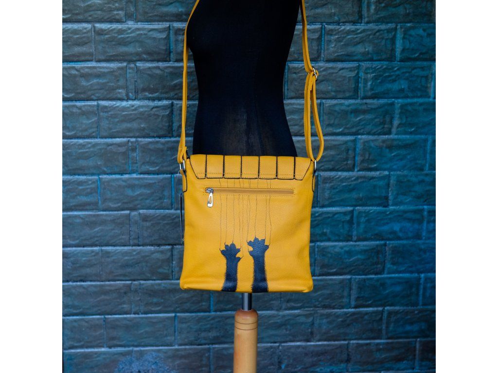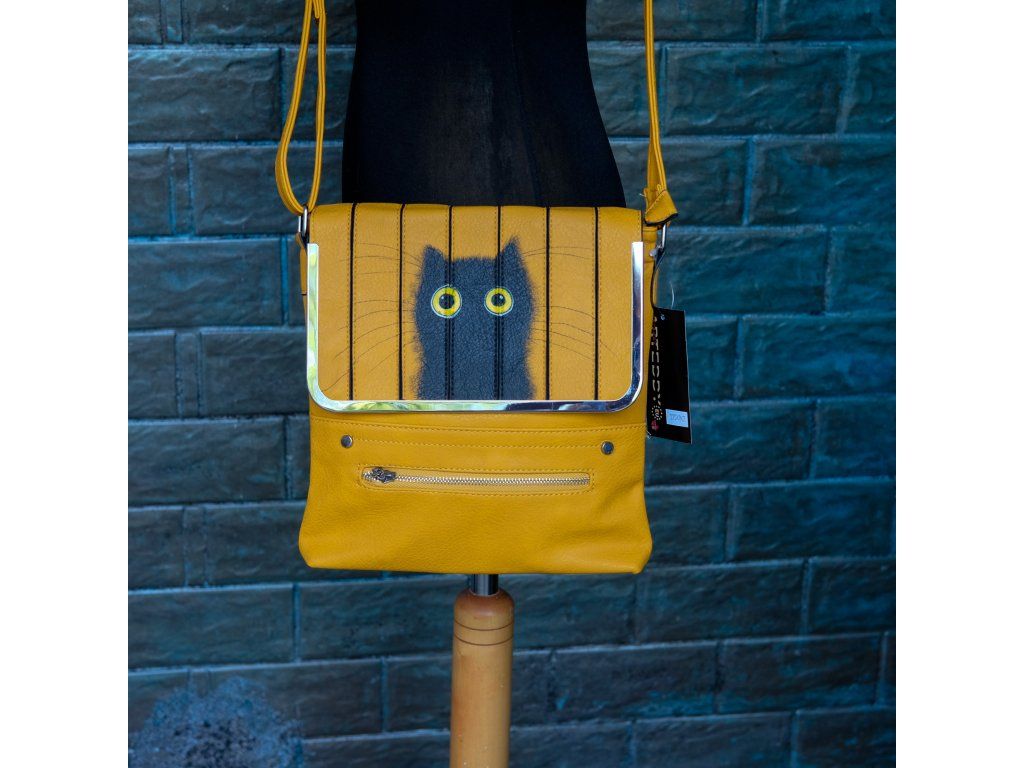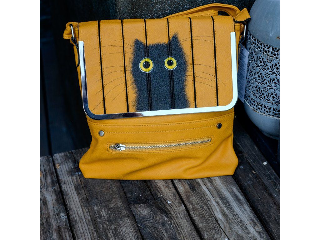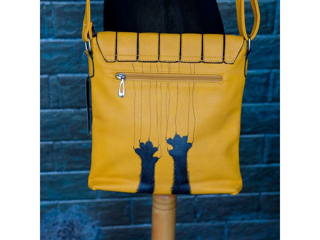 malovaná originál, vnitřek je dělený po jeho stranách najdete 3 kapsičky 2 otevřené a jednu na zip. jedna je součástí dělící "přepážky. Jedna kapsa je i z vnější strany kabelky. Jedna menší i pod kočkou na přední straně . Kabelka je na zip a magnetické zapínání