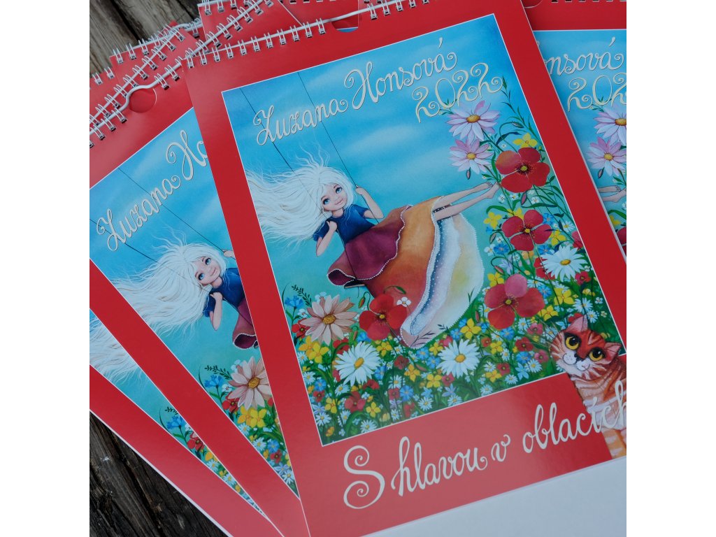 Kalendář "S hlavou v oblacích" byl pro mne jednou velikou radostí. Doba byla občas smutná a otravná a tak jsem k malování utíkala často. Obrázky jsou hodně z mého života.