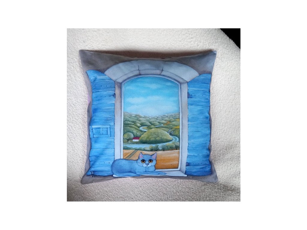 ze zadní strany bavlna barevně ladící s obrázkem. Kvalitní náplň -duté vlákno. Prát na 40 stupňů.