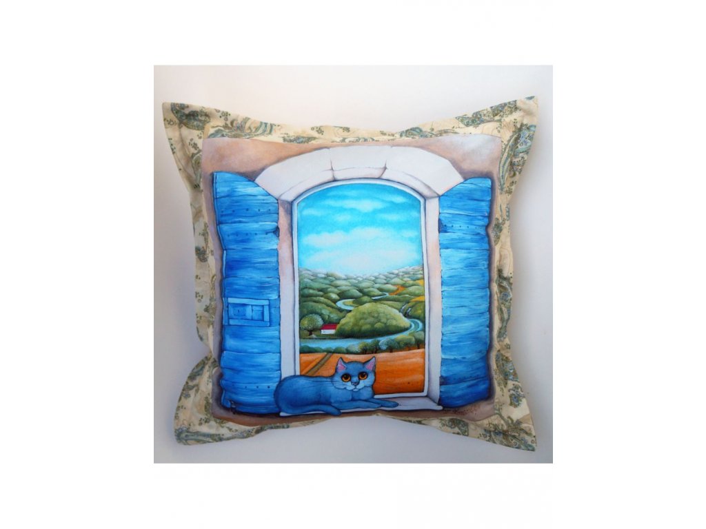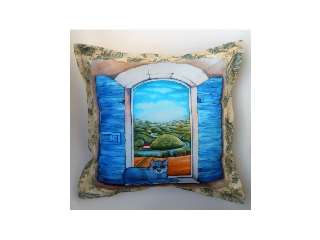 látka kvalitně vytištěná do vlákna -100% kvalitní bavlna.velikost polštáře 50 x 50 cm plus ozdobný okraj. Zahraniční látky doplňující obrázek krásně ladí.