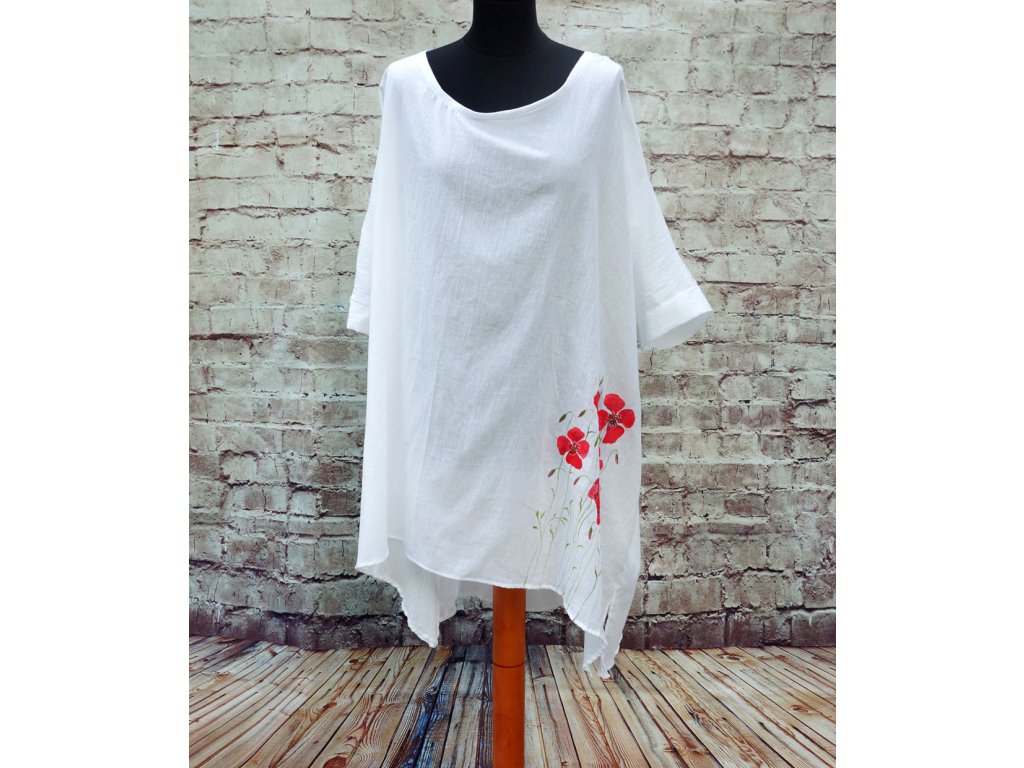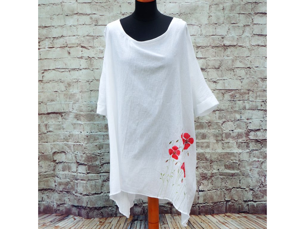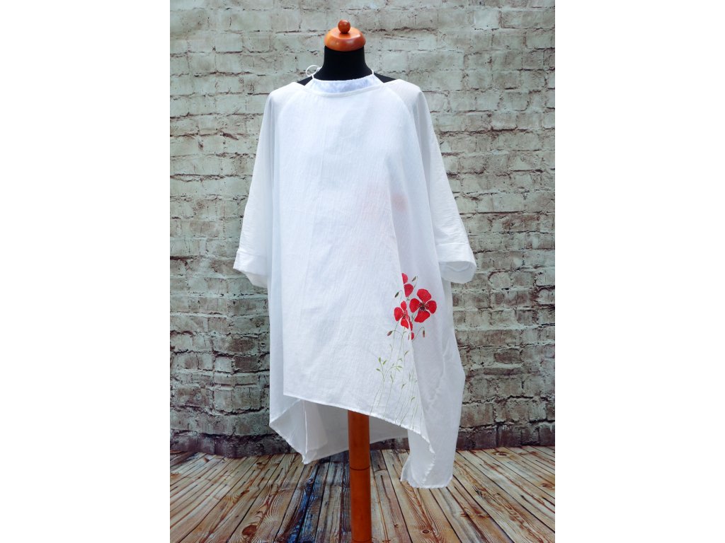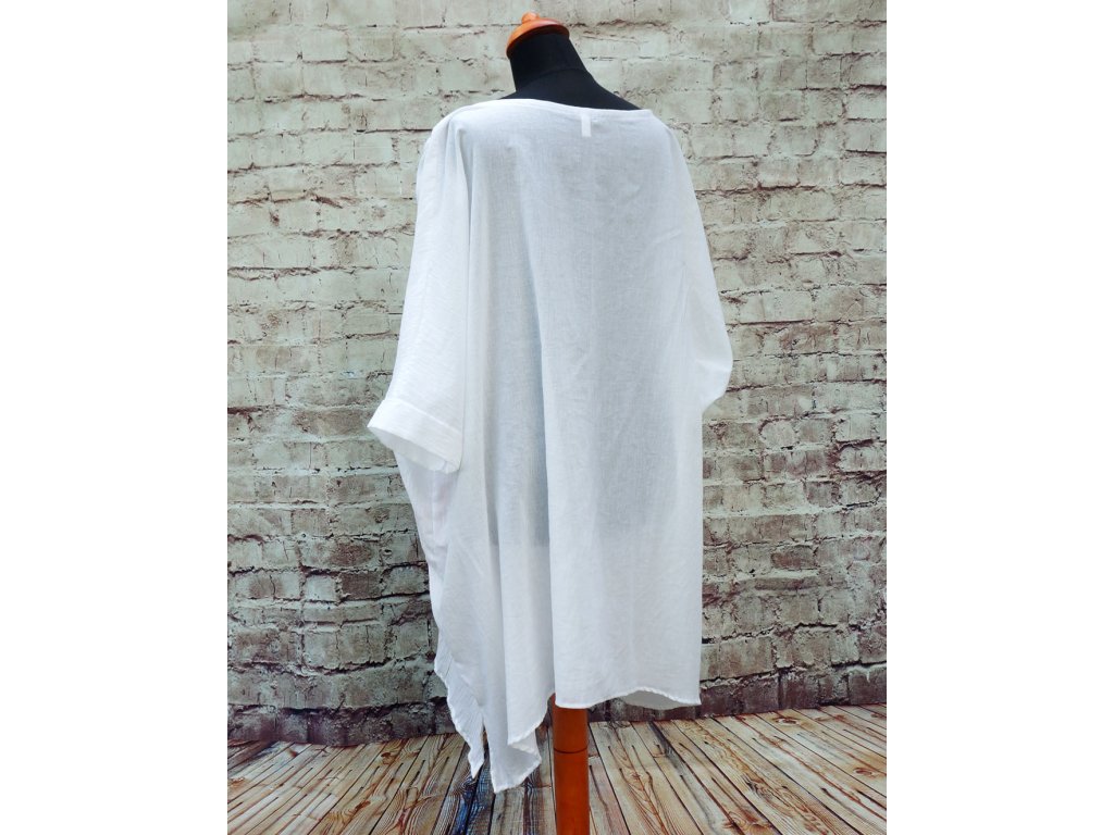 Halenka - havelok je veliký volný lehoučký- materiál je bavlněný mušelín- je jako pírko, nežehlit pomačkání je žádoucí, střih je velikánský je krásné když spadne z ramene..materiál- 100% bavlna -mušelín