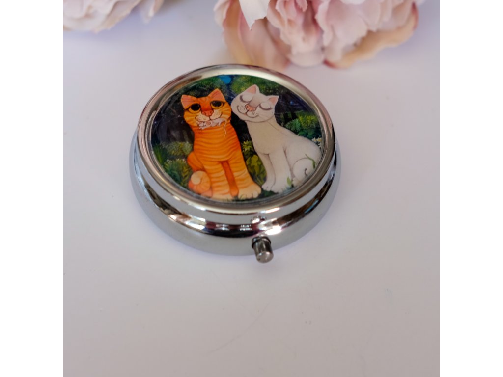 Milá krabiččka , lékovka s obrázkem Kocourka modroočka..na léky na vitamíny .. do kabelky -milá praktická drobnost která potěší...V organzovém pytlíčku.