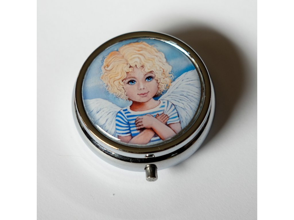 Milá krabiččka, lékovka s obrázkem ..na léky, na vitamíny, do kabelky -milá praktická drobnost která potěší...V organzovém pytlíčku.