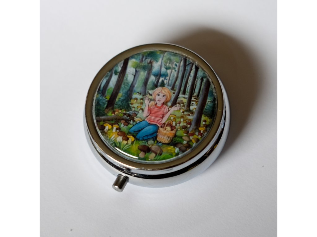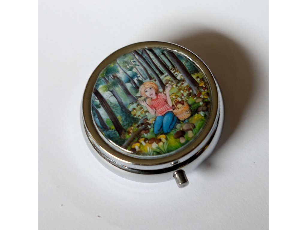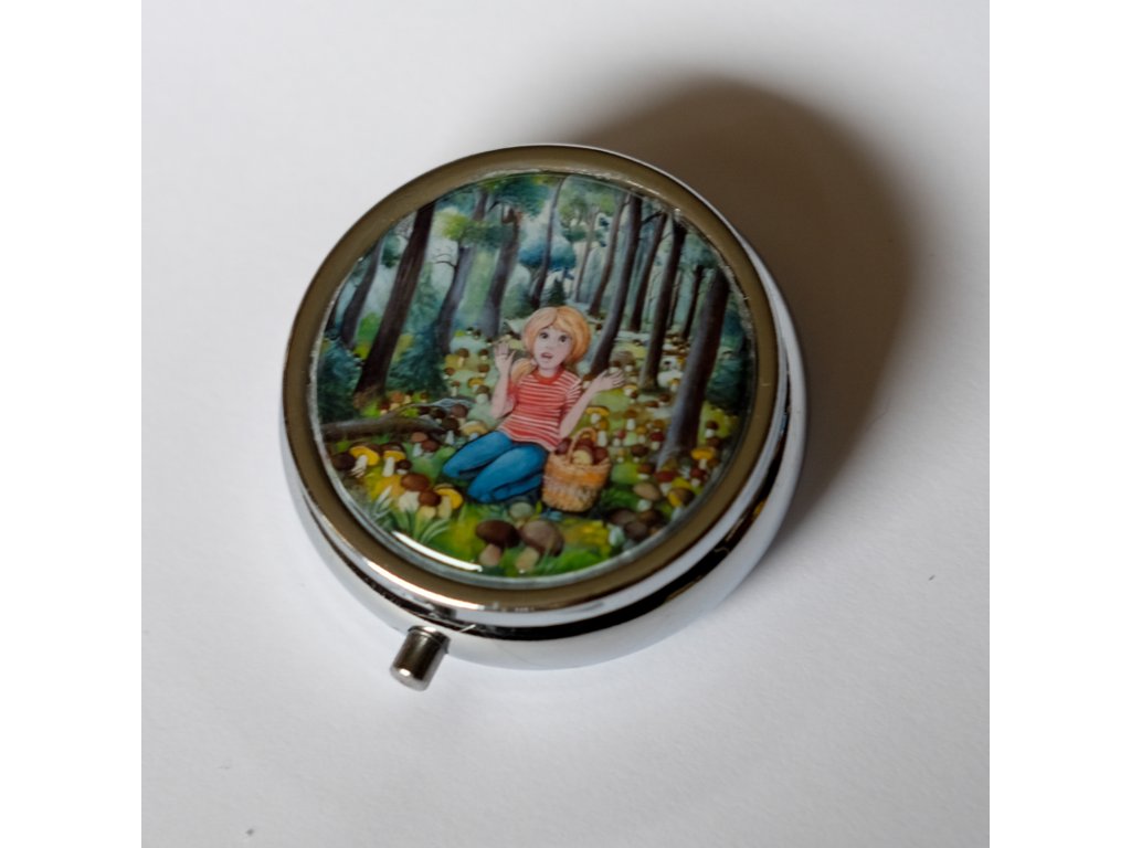 Milá krabiččka, lékovka s obrázkem ..na léky, na vitamíny, do kabelky -milá praktická drobnost která potěší...V organzovém pytlíčku.
