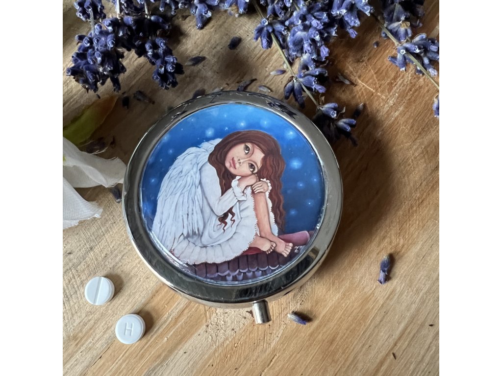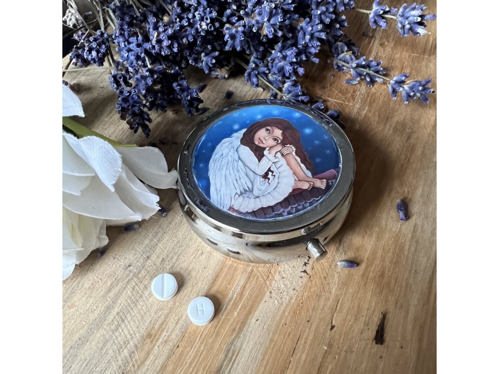 Milá krabiččka , lékovka s obrázkem ..na léky na vitamíny .. do kabelky - milá praktická drobnost která potěší...V organzovém pytlíčku.