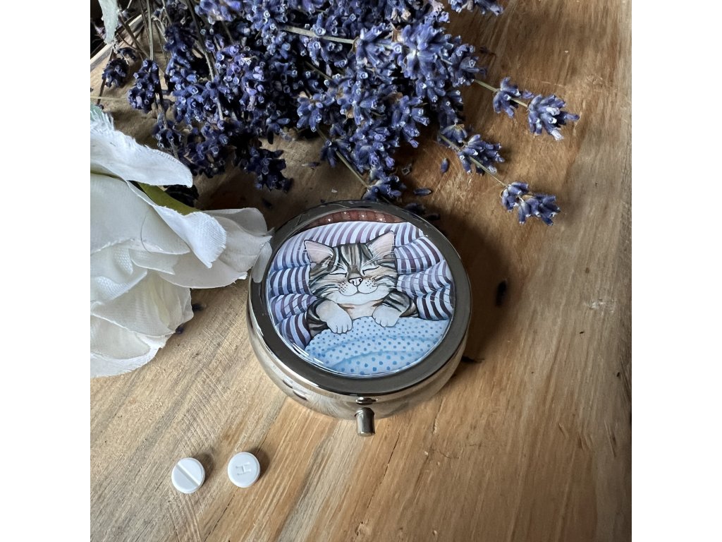 Milá krabiččka , lékovka s obrázkem ..na léky na vitamíny .. do kabelky - milá praktická drobnost která potěší...V organzovém pytlíčku.