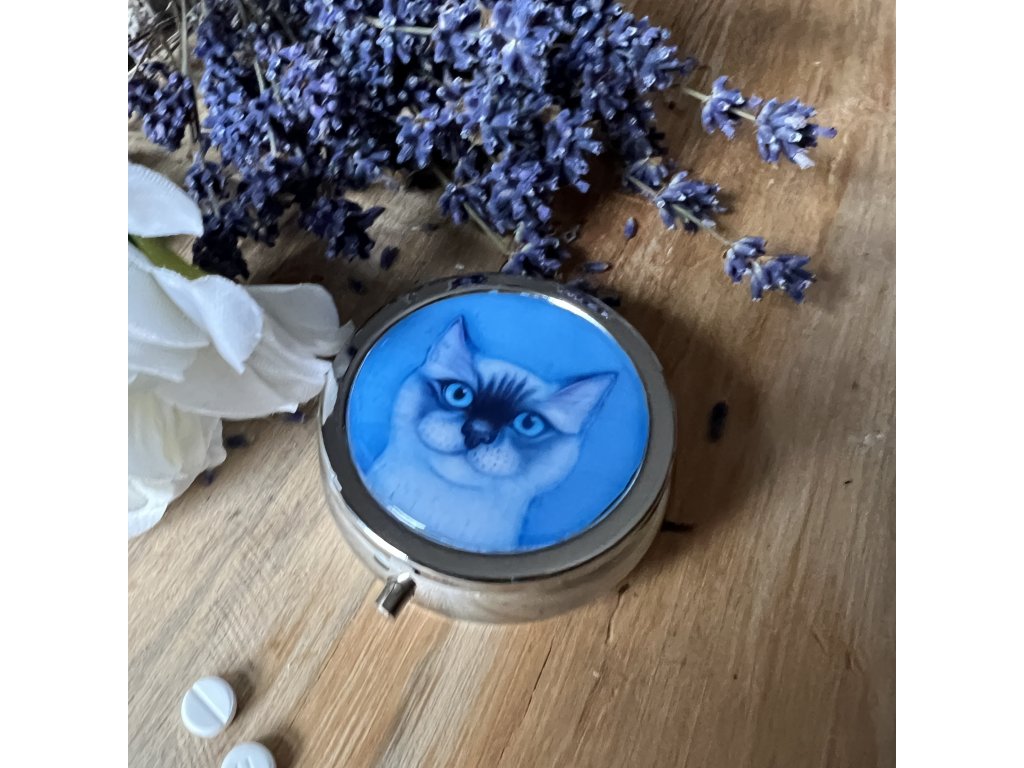 Milá krabiččka , lékovka s obrázkem ..na léky na vitamíny .. do kabelky - milá praktická drobnost která potěší...V organzovém pytlíčku.