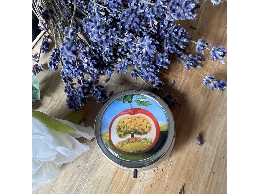 Milá krabiččka , lékovka s obrázkem ..na léky na vitamíny .. do kabelky - milá praktická drobnost která potěší...V organzovém pytlíčku.