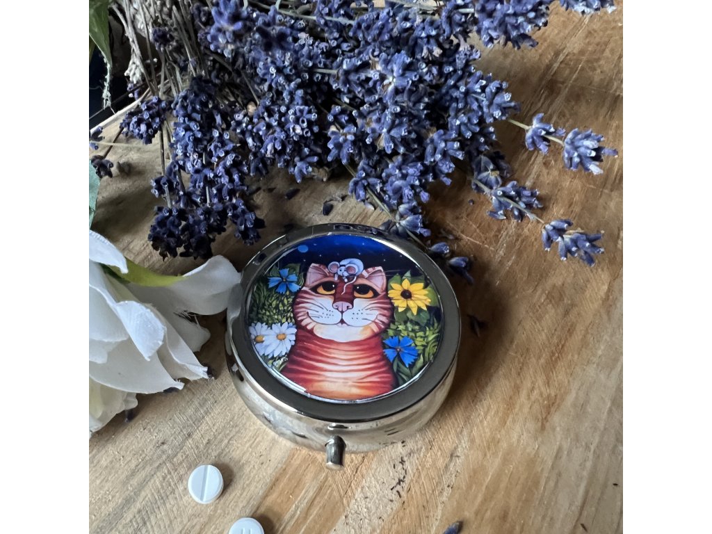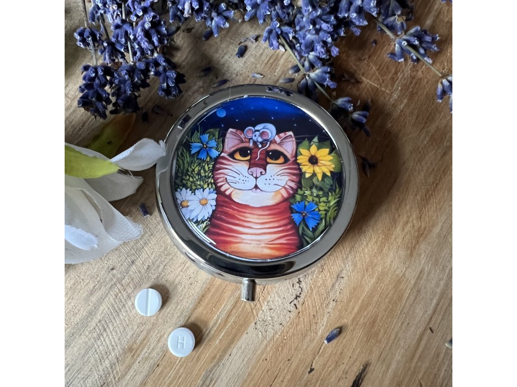 Milá krabiččka , lékovka s obrázkem ..na léky na vitamíny .. do kabelky - milá praktická drobnost která potěší...V organzovém pytlíčku.