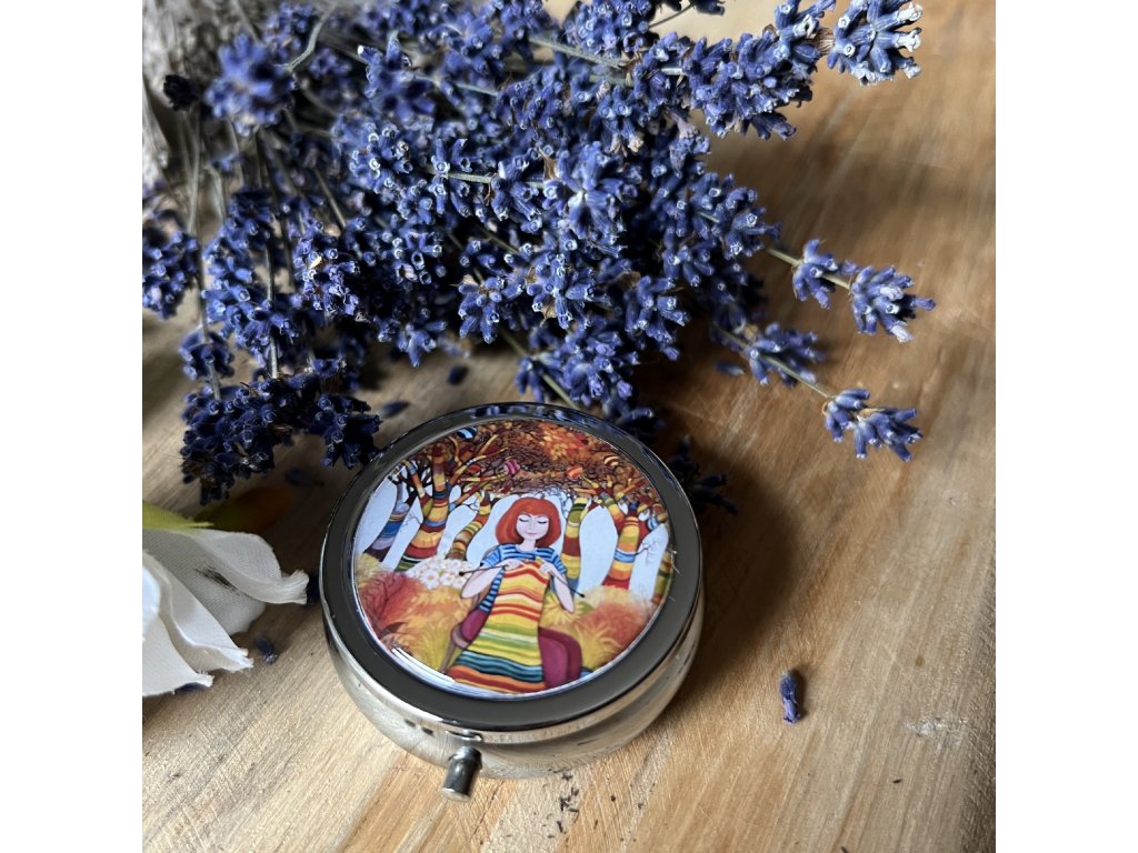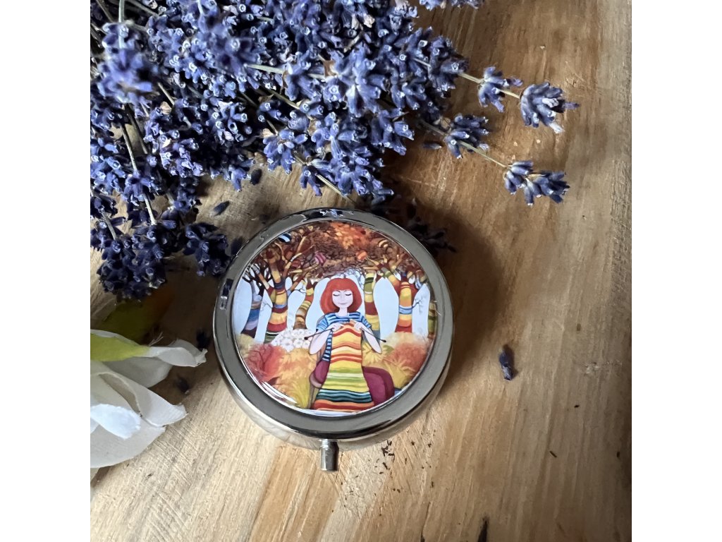 Milá krabiččka , lékovka s obrázkem ..na léky na vitamíny .. do kabelky - milá praktická drobnost která potěší...V organzovém pytlíčku.