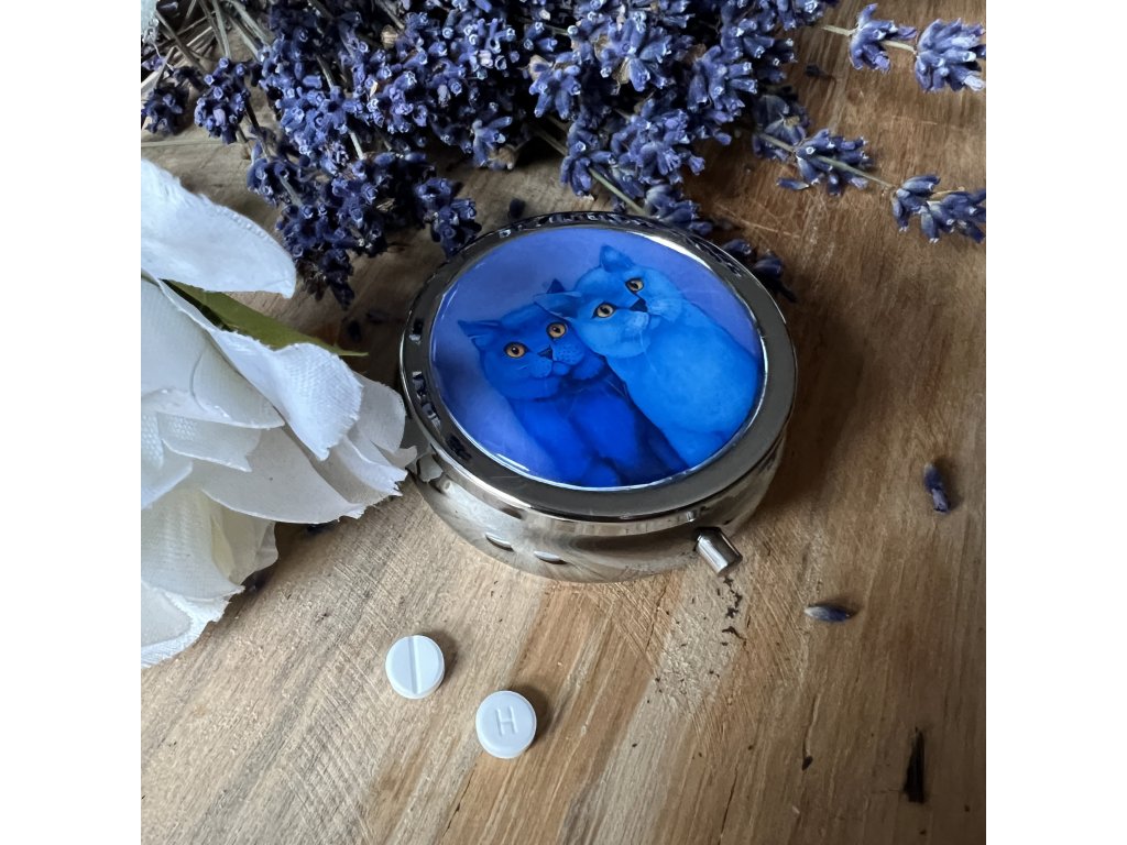 Milá krabiččka , lékovka s obrázkem ..na léky na vitamíny .. do kabelky - milá praktická drobnost která potěší...V organzovém pytlíčku.