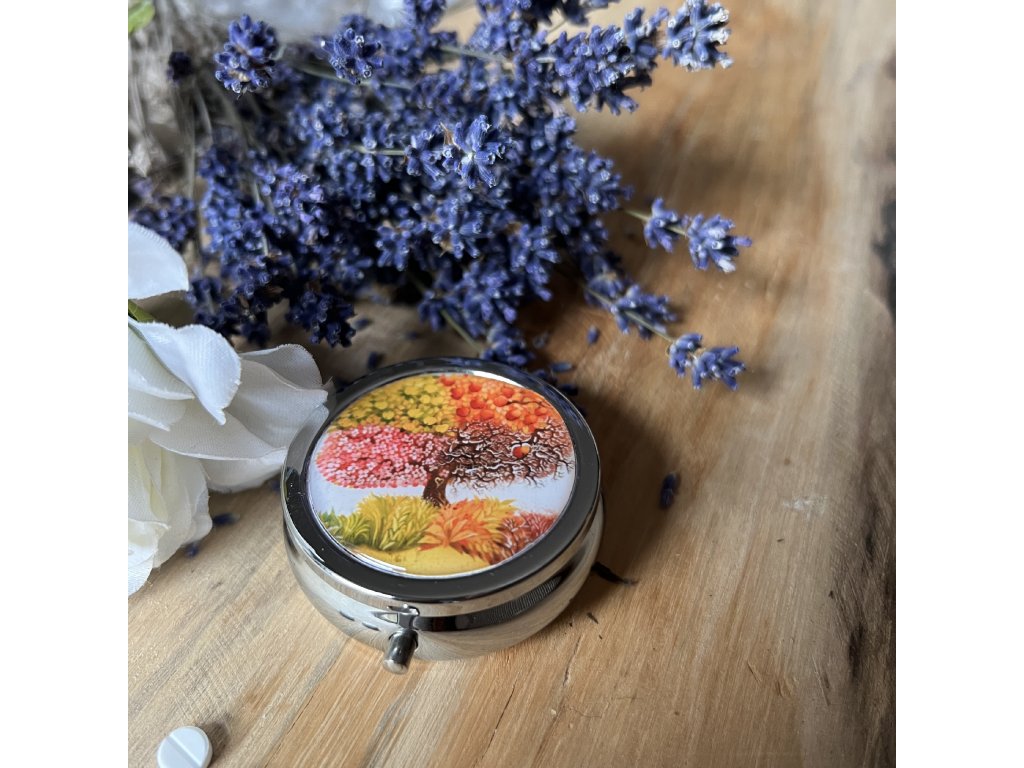 Milá krabiččka , lékovka s obrázkem ..na léky na vitamíny .. do kabelky - milá praktická drobnost která potěší...V organzovém pytlíčku.