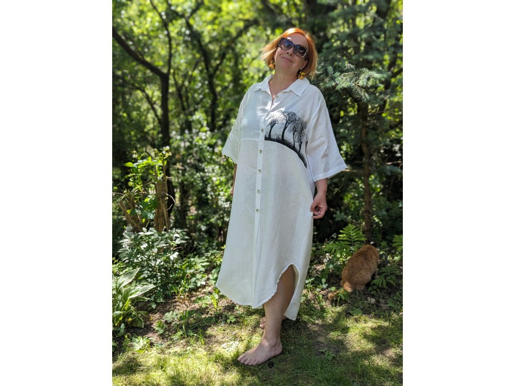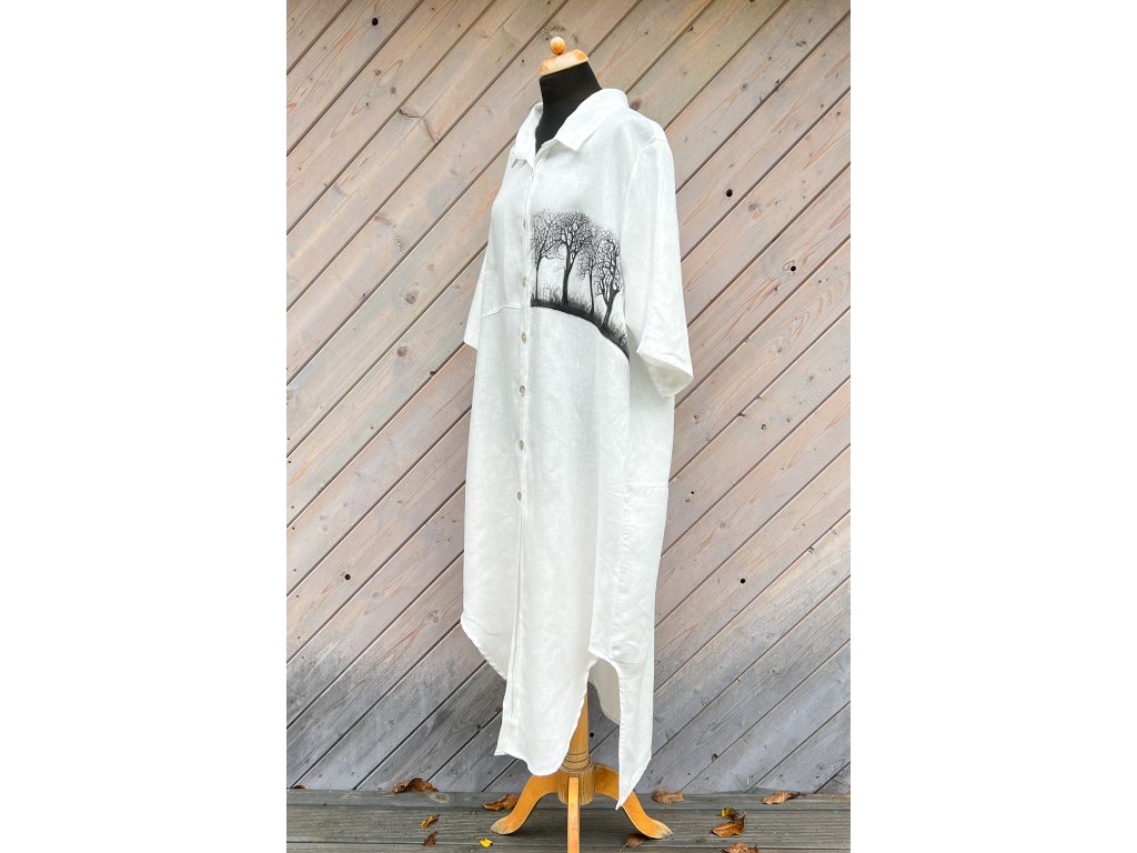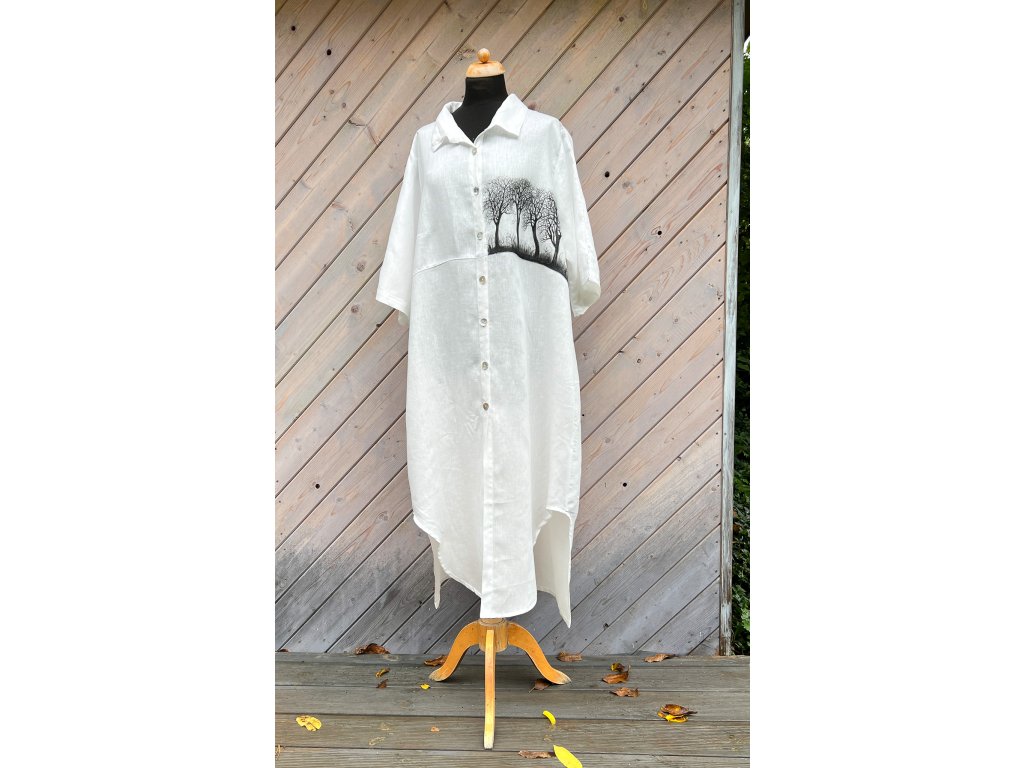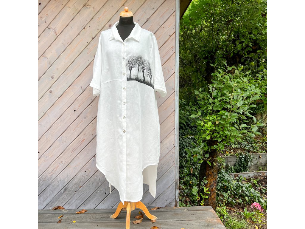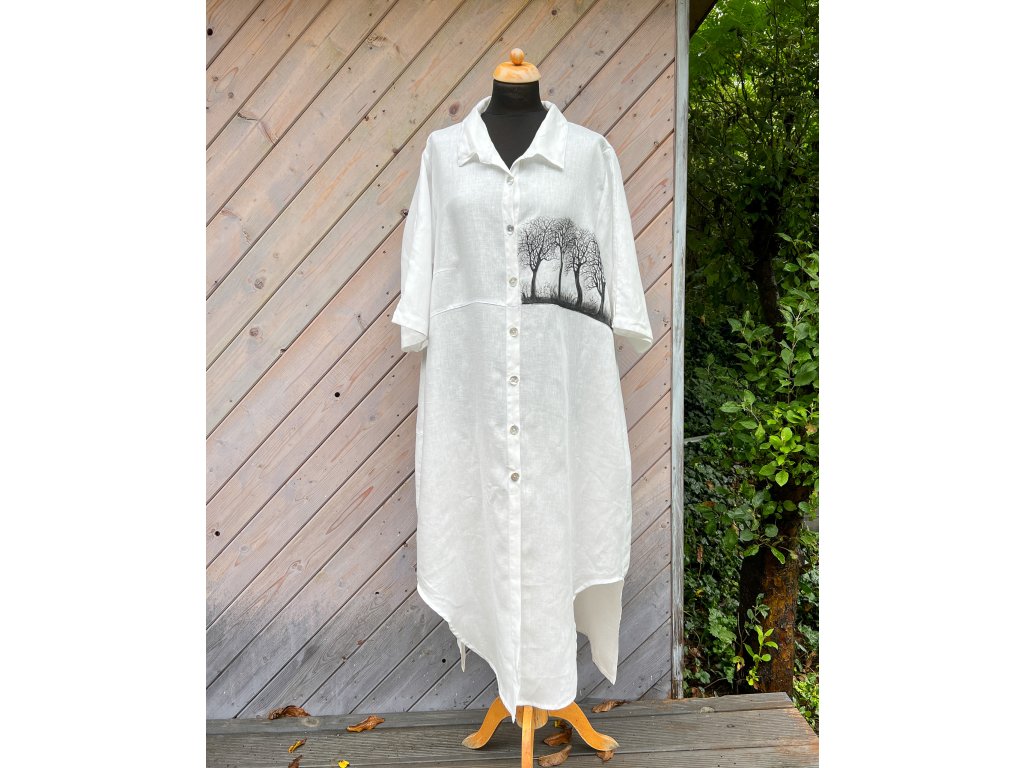 Novinka krásná velikostně dost univerzální, originální, lněná a mnou ručně malovaná košile. Nový typ je užší a delší.