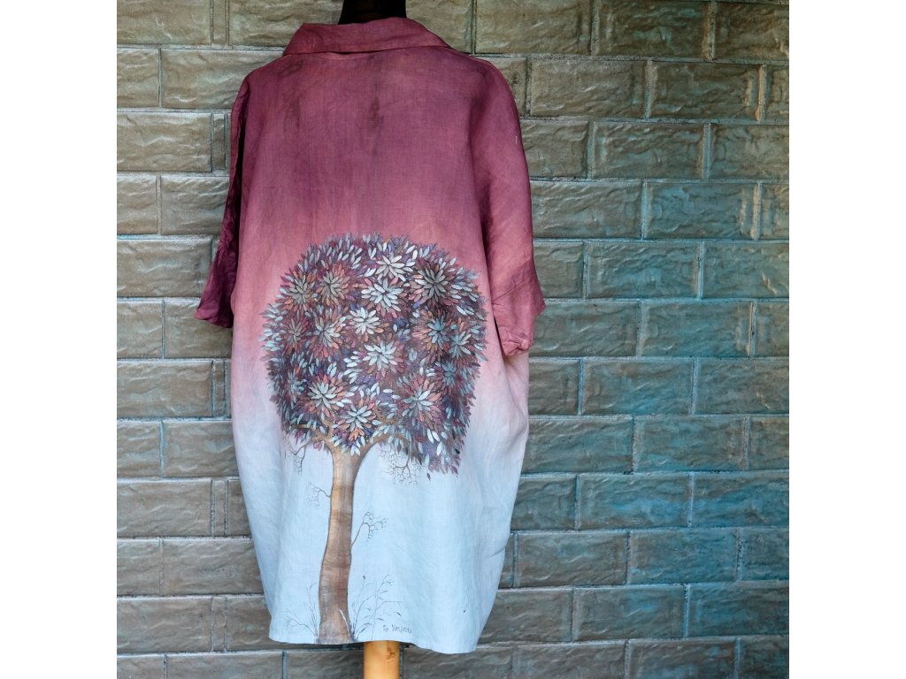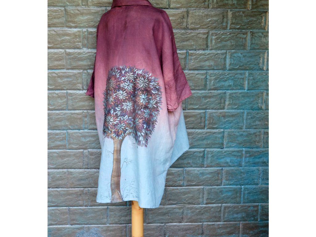 Novinka krásná velikostně dost univerzální, originální, lněná, ručně barvená a mnou pracně malovaná košile.