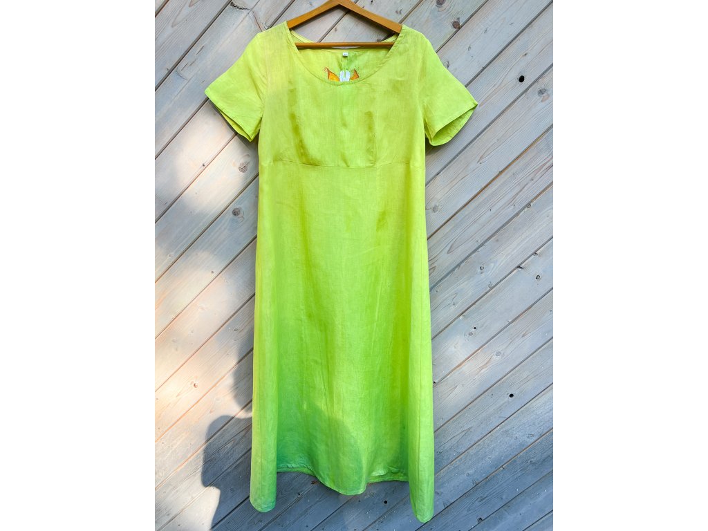 Šaty mnou barvené a malované - ruční barvení dělá nádherné struktury a odstíny. Barvy jsou kvalitní reaktivní - pevně se váží do vlákna a nepouští..jen je nedokáži uplně dokonale vymáchat tak vám ještě odejde nějaká nedokonale vymáchaná barva, pak již pouštet nebudou. Perte lépe ručně jemně z rubu.