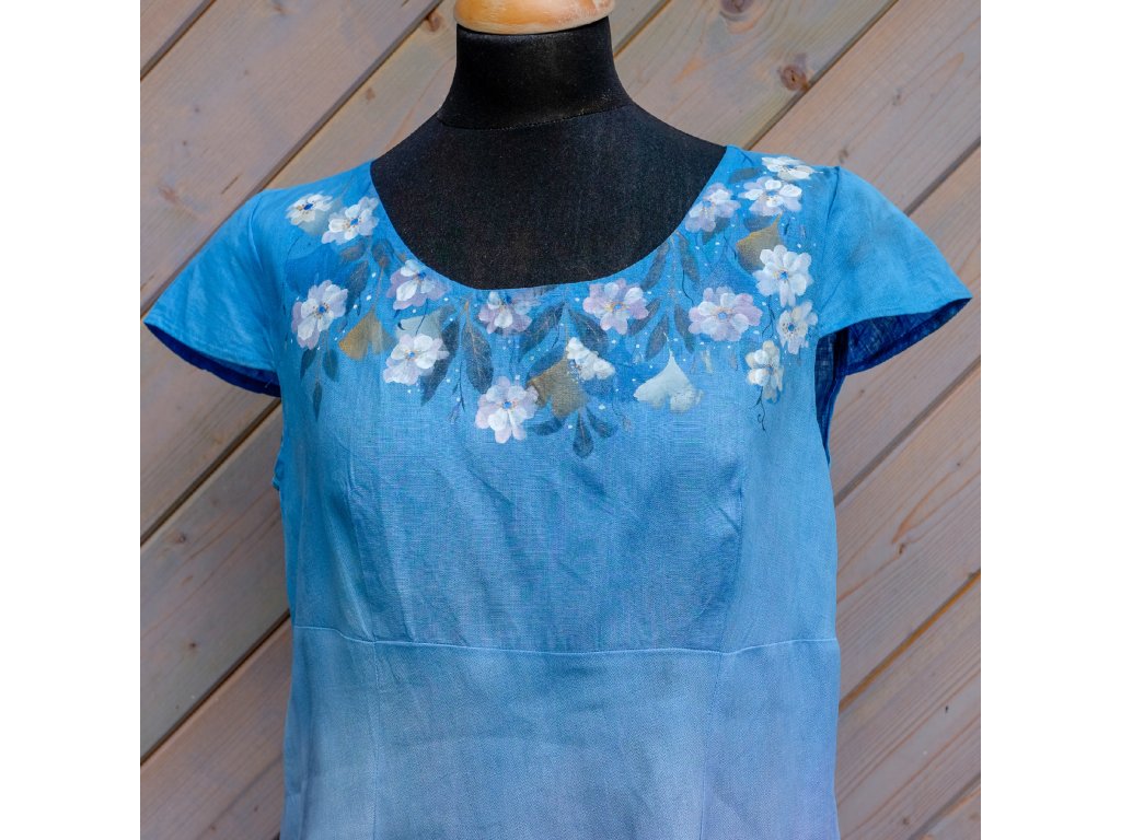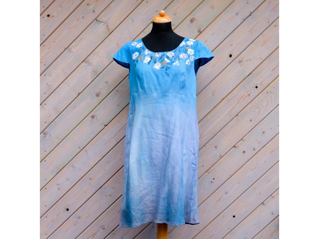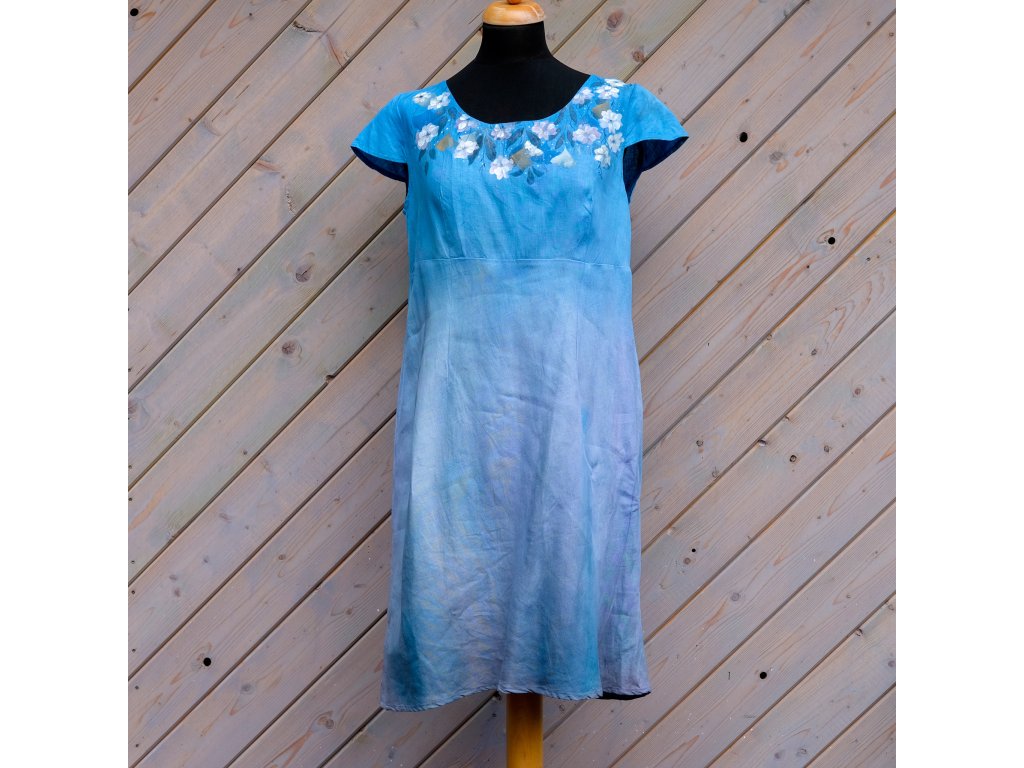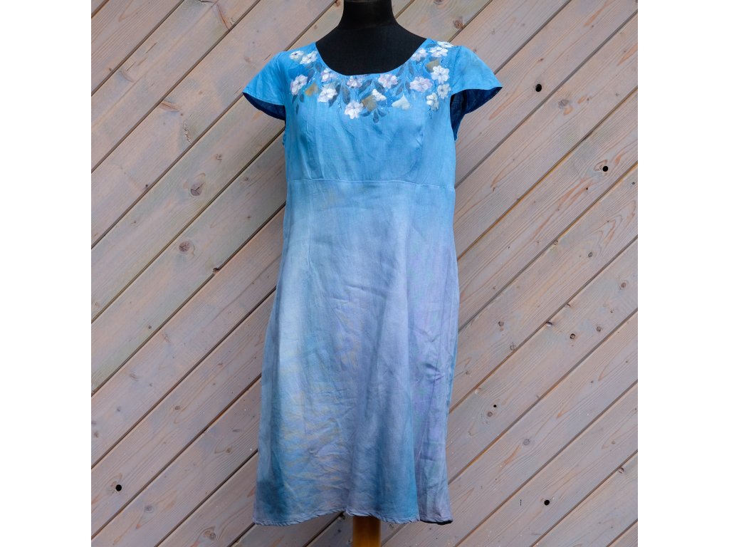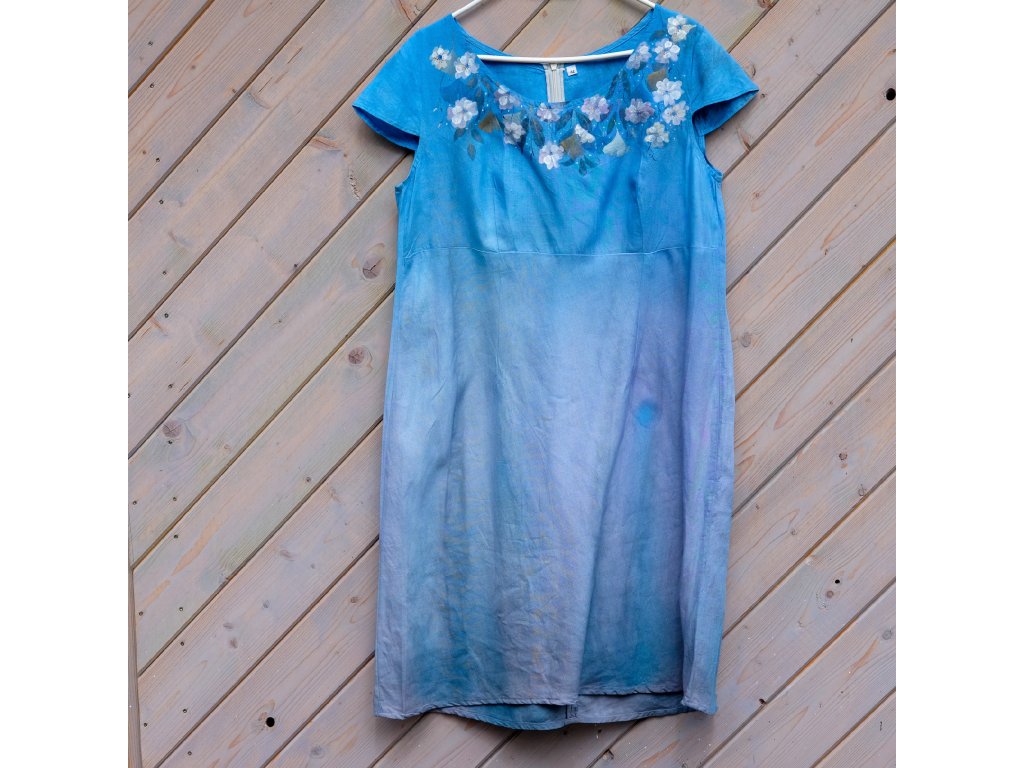 Krásné jednoduché výborně sednoucí lněné šaty . Jsou nabarvené a ručně malované