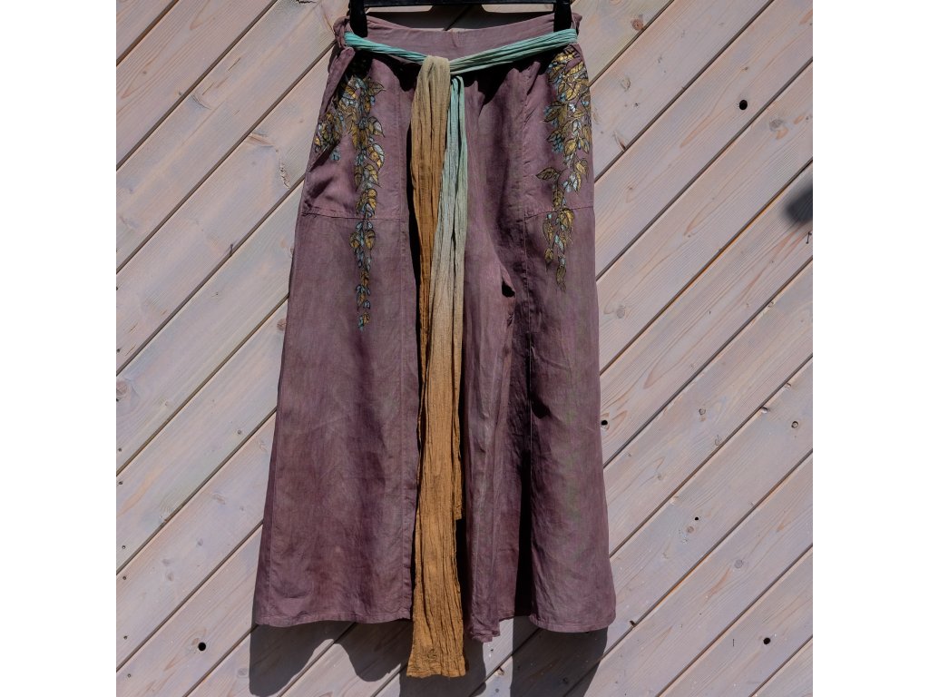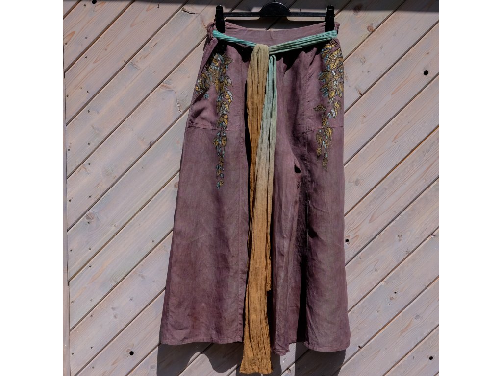 Kalhoty jsou ručně barvené v kvalitních reaktivních barvách -barva vniká do vlákna , neobaluje ho a proto barva drží naprosto dokonale- jen při prvním praní dejde ješět ne zcela dokonale vymáchaná barva.
