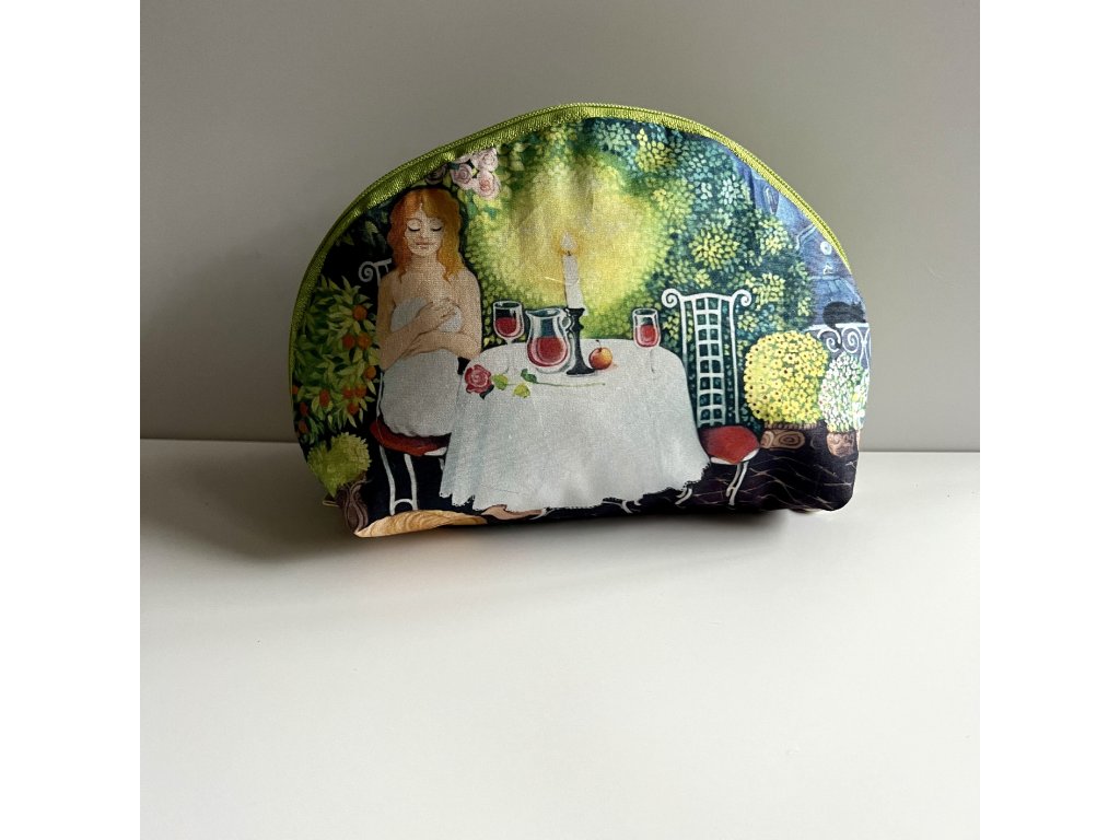 Menší, ale prostorná taštička na kosmetiku, podložená měkkoučka, vnitřek a zadní strana je barevně sladěná..