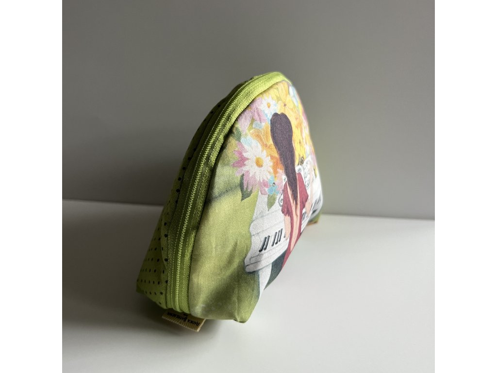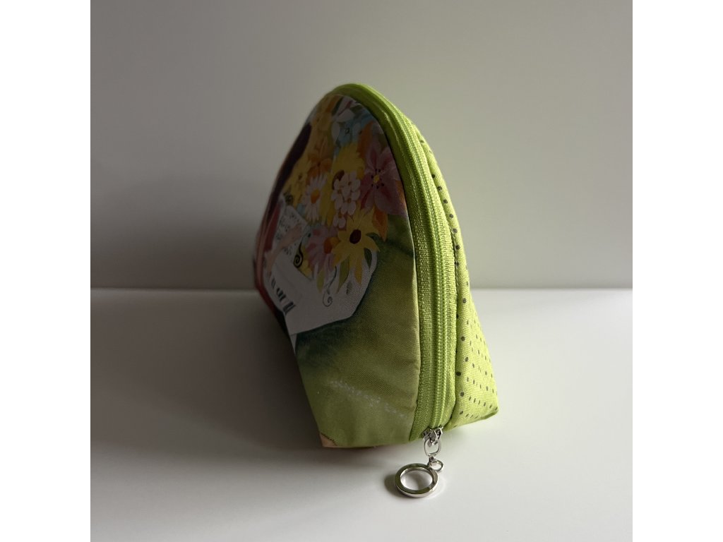 Menší, ale prostorná taštička na kosmetiku, podložená měkkoučka, vnitřek a zadní strana je barevně sladěná..