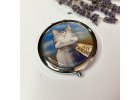 Zrcátko 75 mm velké - z jedné strany můj obrázek, z druhé strany zrcátko. K zrcátku patří měkká taštička která Vám zrcátko ochrání třeba v kabelce..