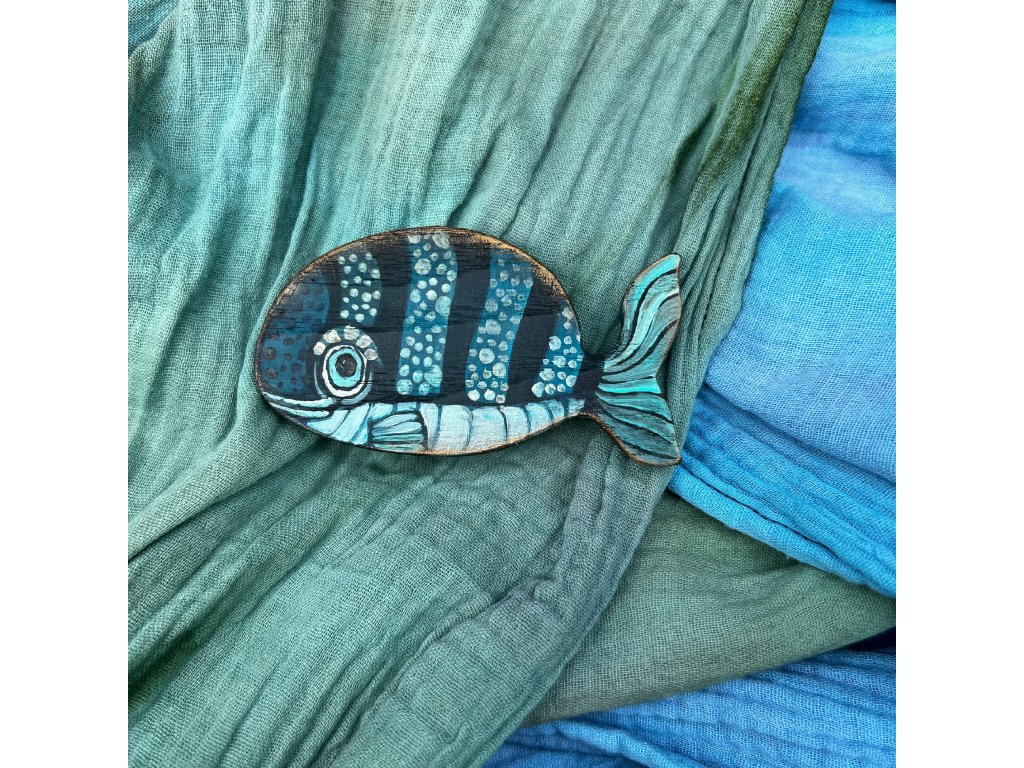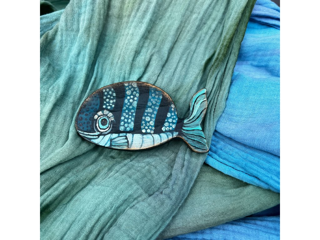 Ze dřeva ručně vyříznutá dřevěná brož namalovaná a pečlivě zalakovaná..