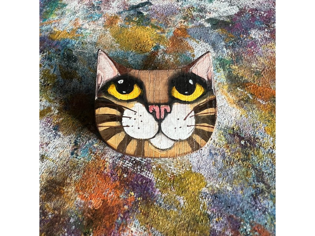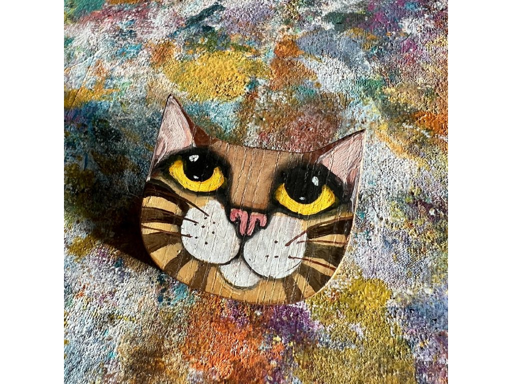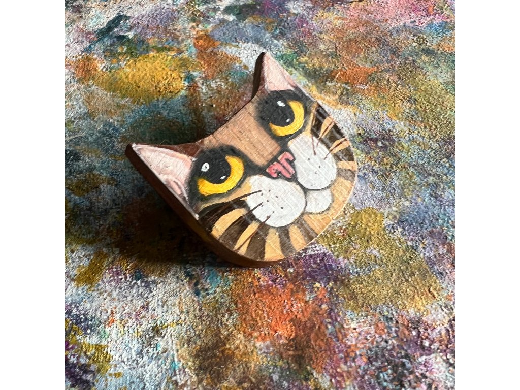 Ze dřeva ručně vyříznutá dřevěná brož namalovaná a pečlivě zalakovaná..