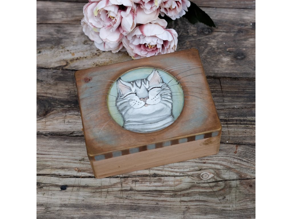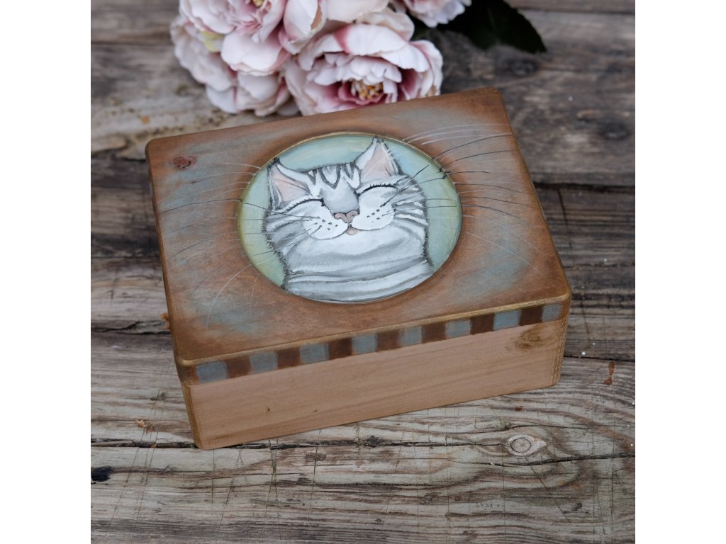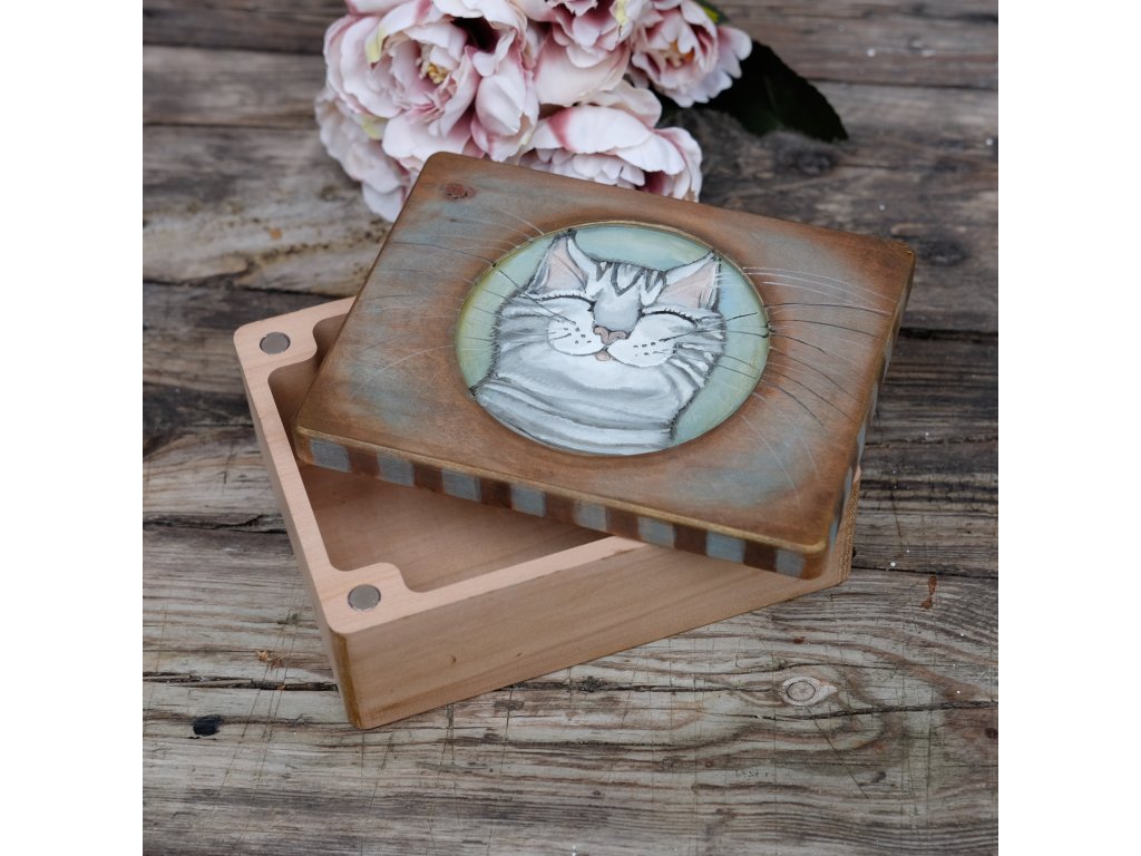 Krásná precizně vyrobená krabička z tvrdého hrušňového dřeva, víko pasuje přesně a drží na místě díky čtyřem magnetům.