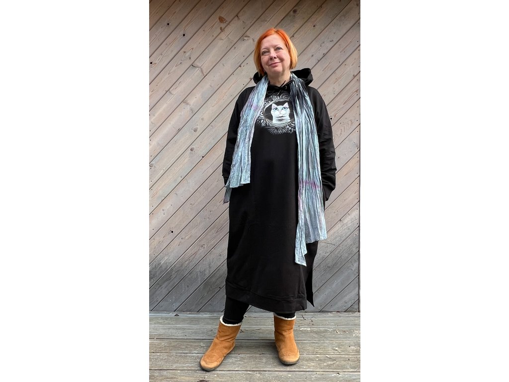 Slušivé jednoduché mikinové šaty s kapucou - originál malované.